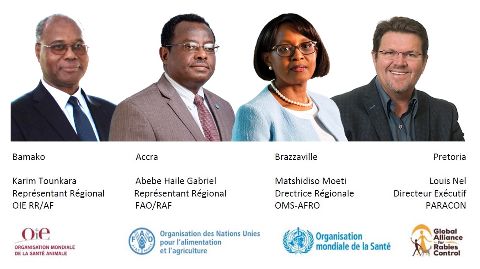 Aujourd’hui, à l’occasion de la 14e Journée Mondiale de la Rage, les principaux représentants africains de l’Organisation Mondiale de la Santé (OMS), de l’Organisation Mondiale de la Santé Animale (OIE), de l’Organisation des Nations Unies pour l’Alimentation et l’Agriculture (FAO) et l’Alliance Mondiale pour la Lutte contre la Rage (GARC) lancent un appel conjoint aux Directeurs des Services Vétérinaires, aux Directeurs des Services de Santé Publique et aux autres partenaires de l’approche « Une Seule Santé » des États Membres de l’Afrique pour qu’ils mobilisent et accélèrent les efforts pour lutter contre la rage et débarrasser l’Afrique des décès humains dus à la transmission de la rage par les chiens d’ici 2030.