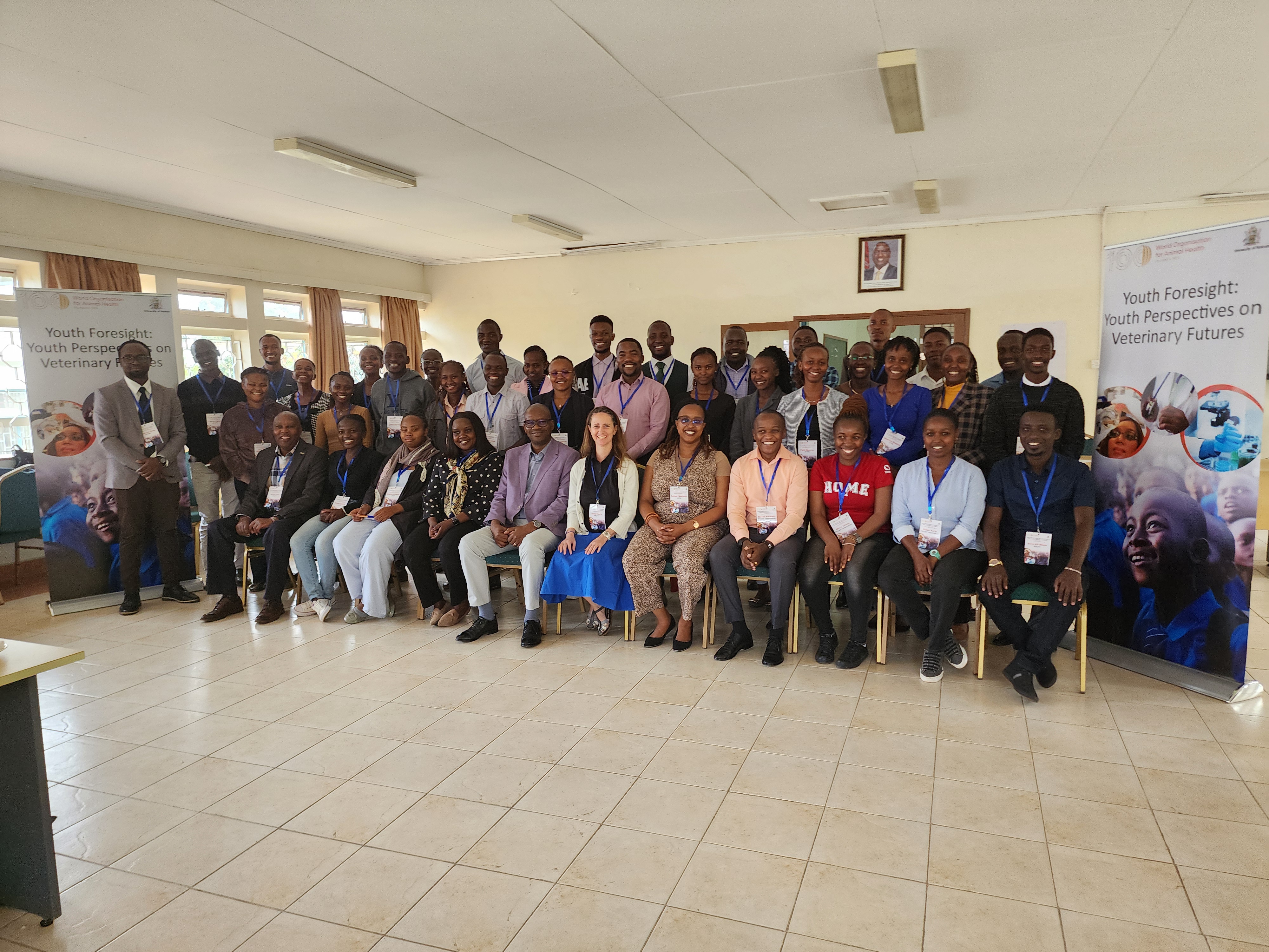 Le Dr Néo Mapitse, Représentant de l’OMSA pour l’Afrique orientale, en ouvrant l’atelier, a engagé les jeunes professionnels dans des discussions prospectives sur la manière dont leurs précieuses contributions au secteur peuvent être améliorées et renforcées. Des membres de l’équipe de développement de la main-d’œuvre vétérinaire du Projet PC-TAD de l’Organisation mondiale de la santé animale (OMSA) étaient également présents et ont guidé les exercices de groupe.