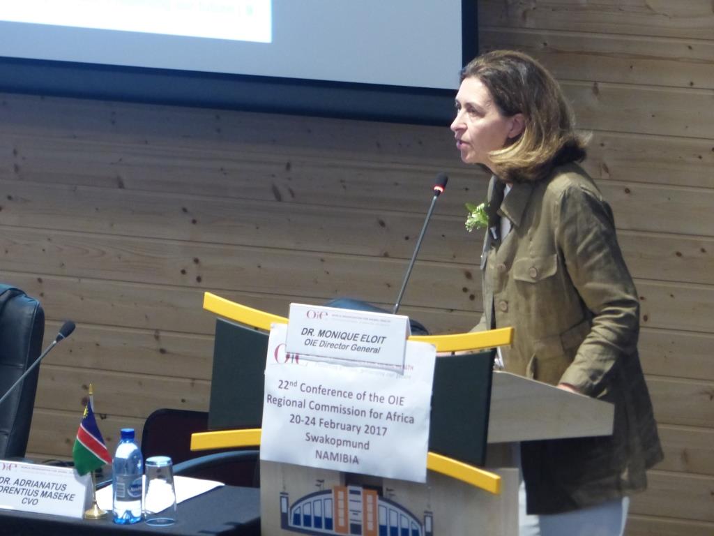 Dr Monique Eloit, Director-General of the OIE congratulated the host country, Namibia, and its neighbours in the Southern Africa Development Community (SADC) region, on their achievements in applying OIE standards. Seven out of fifteen countries in the SADC region have attained either country-wide or zonal freedom for one or more animal diseases and many have managed to gain access to the international markets for animal commodities.