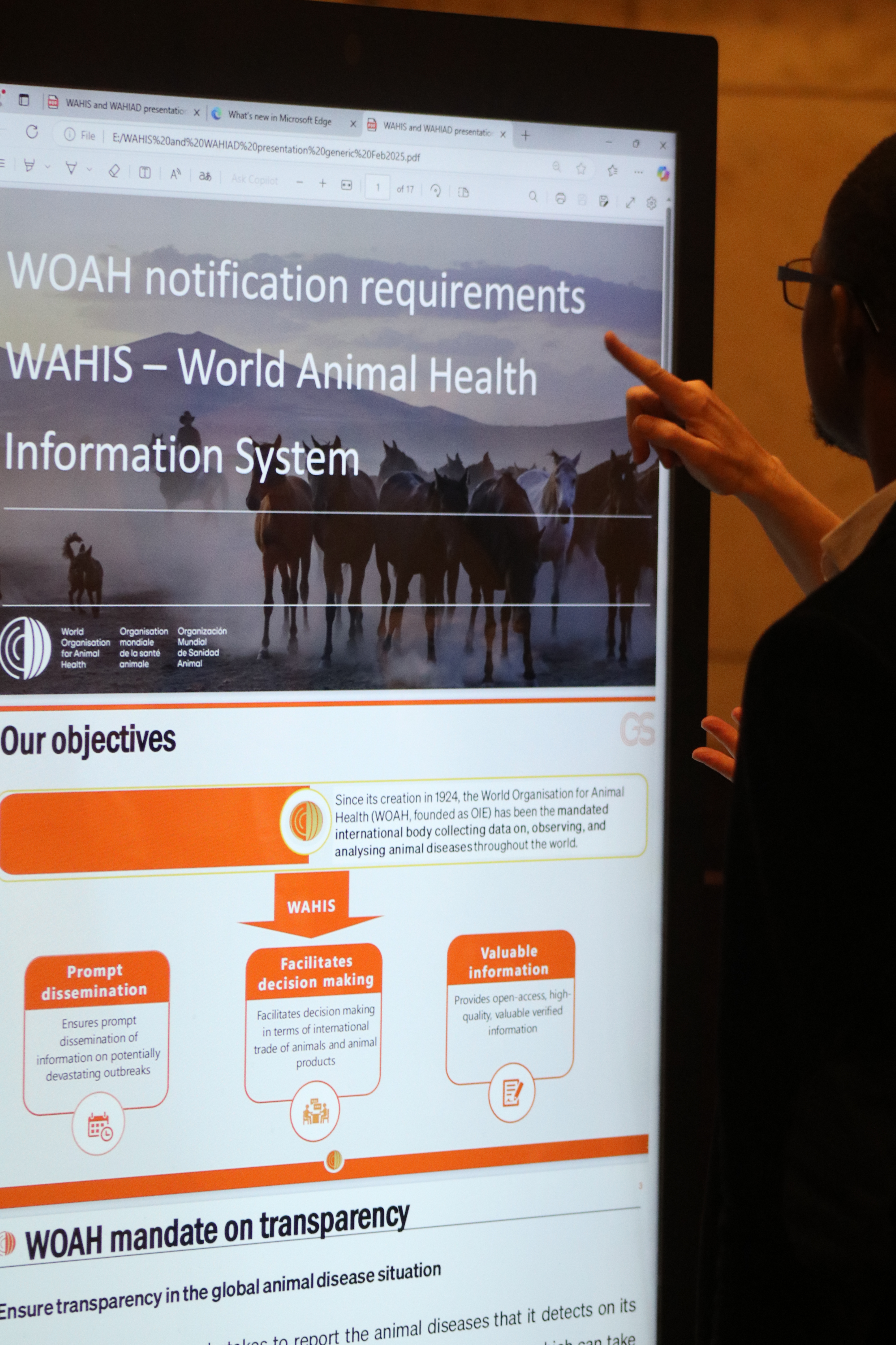 Interactive screen at the WAHIS kiosk. Picture (c) P. Bastiaensen (woah) 2025