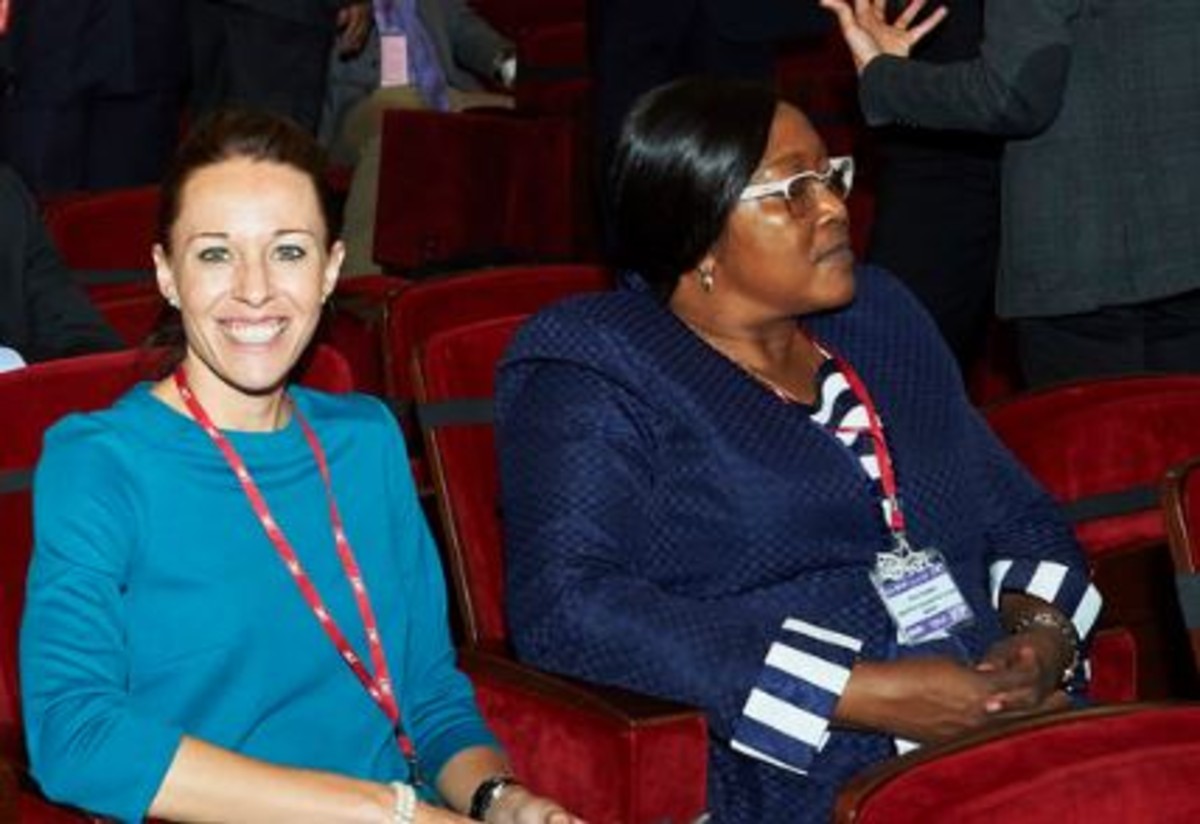 Dr. Monique Eloit (right) listening to the opening addresses.