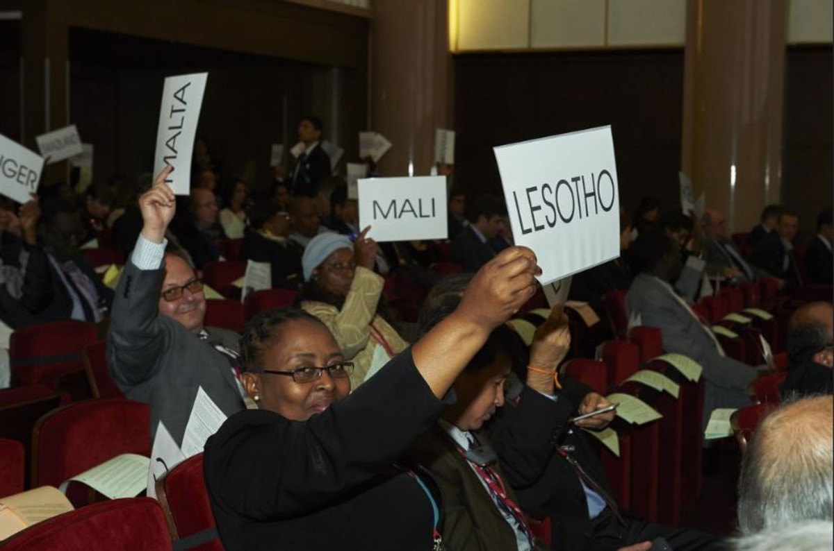 Voting proceedings during the session dedicated to the OIE Terrestrial Code. Seen in front is the OIE Delegate from Lesotho, Dr. Marosi Molomo, casting her vote.