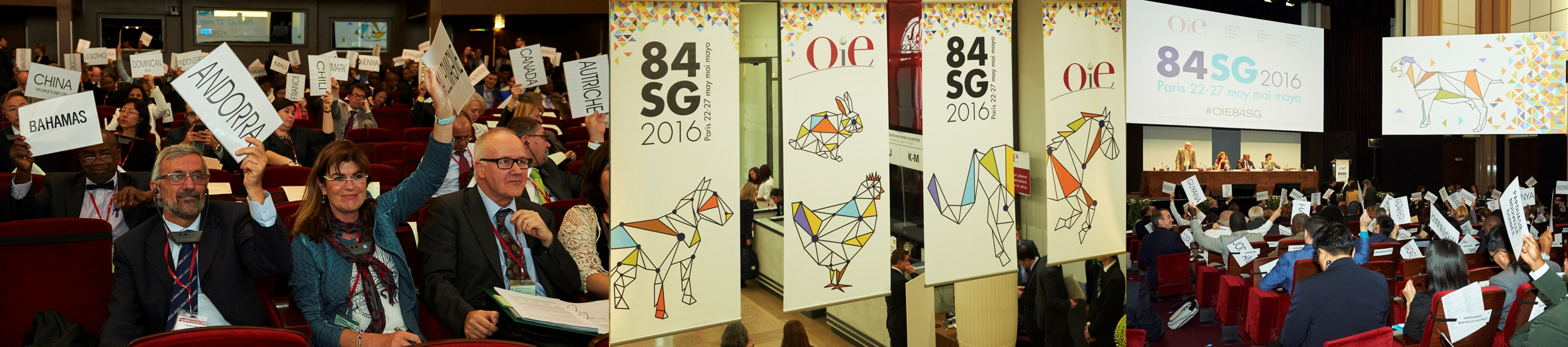 About About 850 participants, representing national Delegates from 144 Member Countries of the OIE (of which 34 were from Africa) and from 41 international, intergovernmental, regional and national organisations participated in the event. The opening ceremony was held at the Maison de la Chimie in the presence of the President of the OIE, Dr Botlhe Michael Modisane, the Director General of the OIE, Dr Monique Eloit and several ministers and members of government of OIE Member Countries.