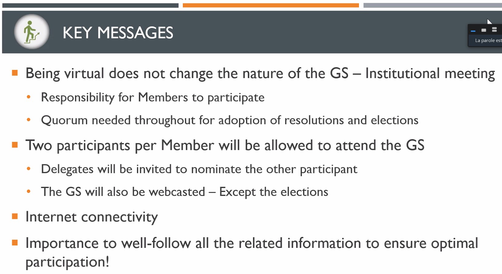 OIE Director General Monique Eloit, provided some key messages related to the organisation of the overall activities, the elections and the adoption of Standards. The new virtual format of the 88th General Session was presented and will be held from Monday 24 to Friday 28 May 2021.