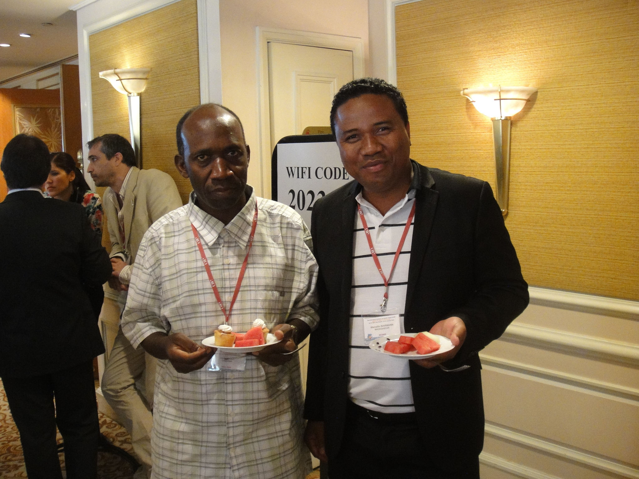 Left : Dr Sitokozile Sibanda, Chief Veterinary Research Officer and OIE focal point for aquatic animal diseases from Zimbabwe and right : Dr. Herbert Schneider, Namibia, Chair of the OIE ad hoc group on PVS Evaluation. Picture © P. Bastiaensen (oie) 2015.
