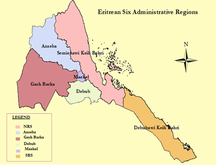 Figure 1: Map of Eritrea showing the six administrative regions © Veterinary Services, Ministry of Agriculture of Eritrea, 2020