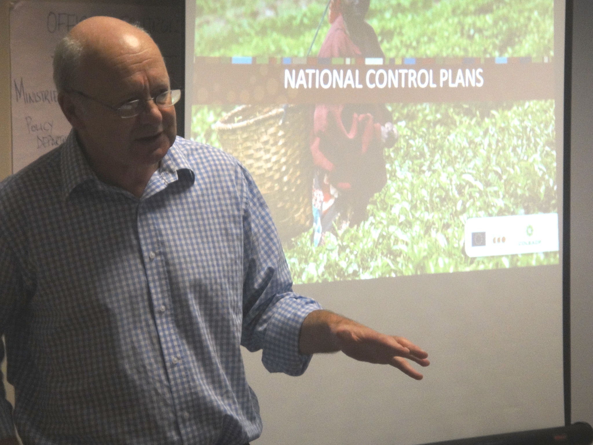 Facilitated by plant protection and food safety experts (Dr Antoine Nguz, Mr Kenneth Clarke and Mr Jeremy Cooper), as well as a representative of the OIE International Trade Department in Paris, Dr. Gillian Mylrea, the training covered all relevant topics, from international standards to legislation, from import/export controls to risk based sampling, and from self-assessment systems to monitoring of residues. Lectures by trainers such as Kenneth Clarke (picture) were intertwined with working group session and debates, relevant case studies and exercises with active contributions from participants. Subject to a successful evaluation of the training’s impact and format, this type of joint EDES – OIE training course might be pursued in 2013 for other regions of Africa and the ACP in general