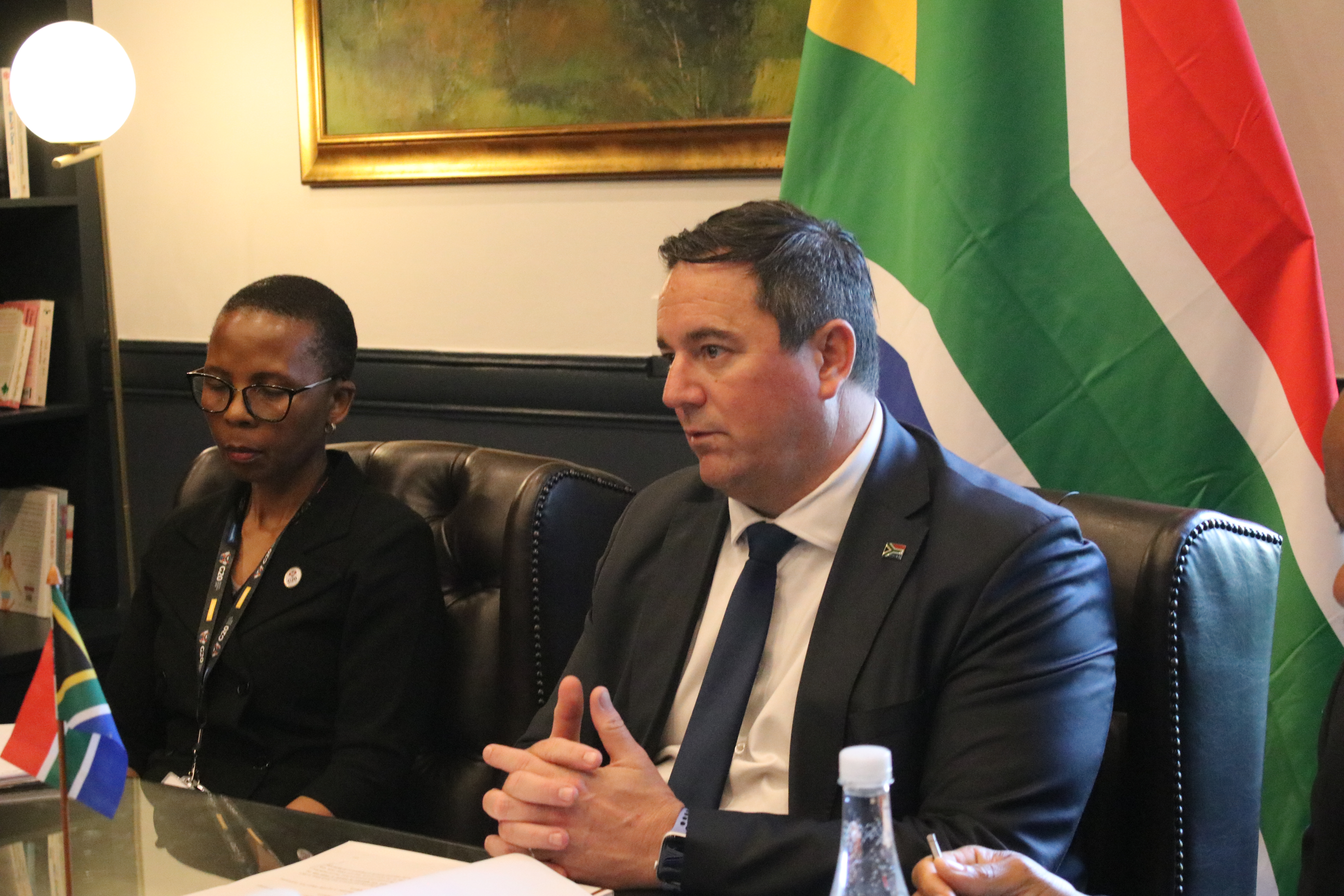 On the sidelines of the G-20 conference, the Director General met with the host, Hon. Mr. John Steenhuisen, Minister of Agriculture, Land Reform and Rural Development of South Africa and his Directors. The discussions focused on strengthening cooperation to protect animal health in the Republic of South Africa and beyond. They exchanged views on strategies to control Foot and mouth disease (FMD), drawing inspiration from successful experiences in other regions, and considered how regional collaboration could amplify impact.