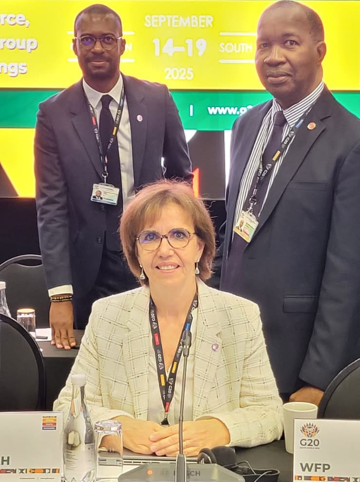 Dr Emmanuelle Soubeyran during the G-20 Ministers’ meeting. Standing behind her (left) are Mr. Pierre-Emmanuel Cangah, WOAH Chief of Staff and (right) Dr. Moetapele Letshwenyo, WOAH Sub-Regional Representative for Southern Africa. Picture (c) P. Bastiaensen (woah) 2025.