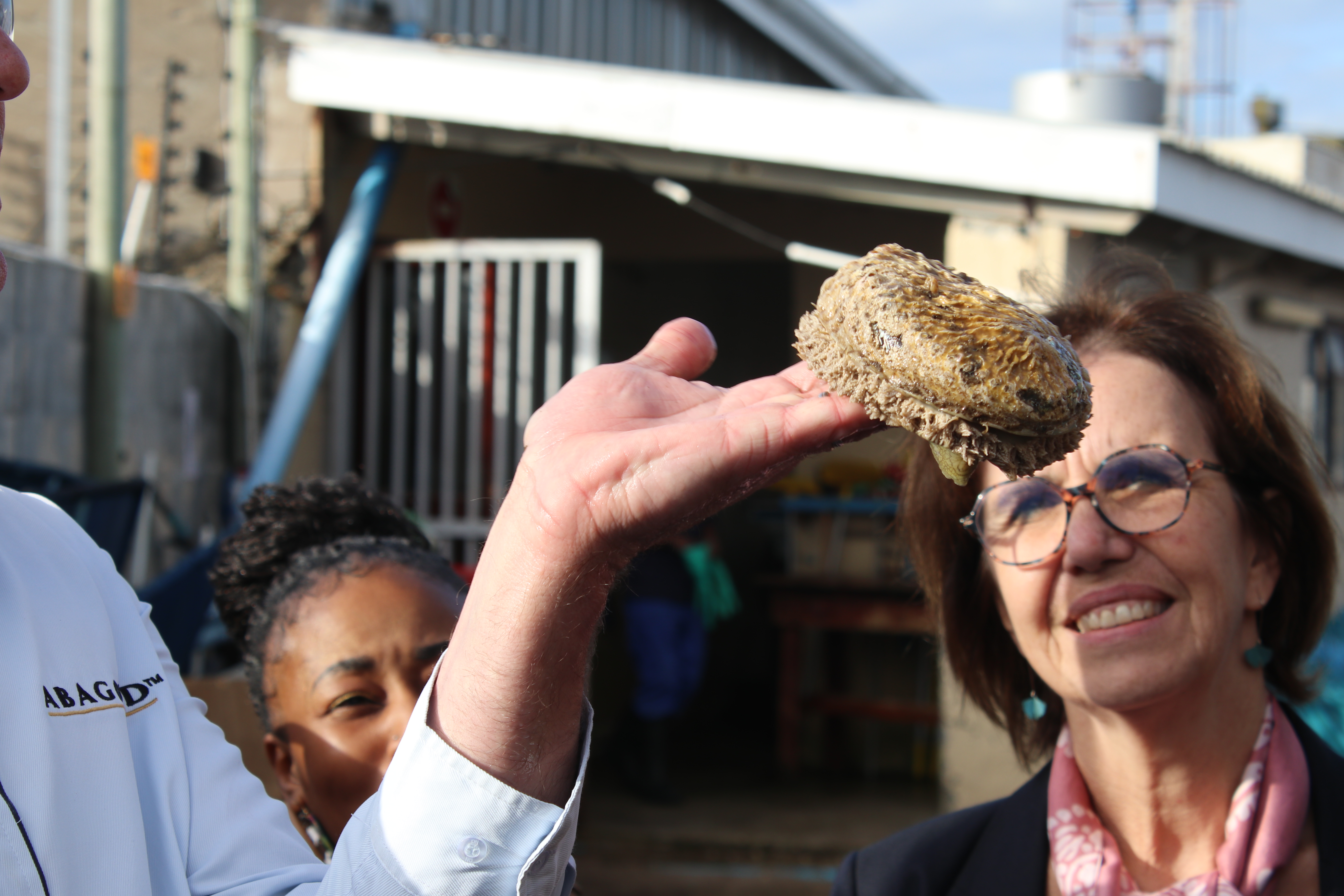 In Hermanus, some 70 kms east of Cape Town, she visited an abalone farm — part of a growing aquaculture sector that holds great promise for economic opportunity and sustainable use of marine resources.