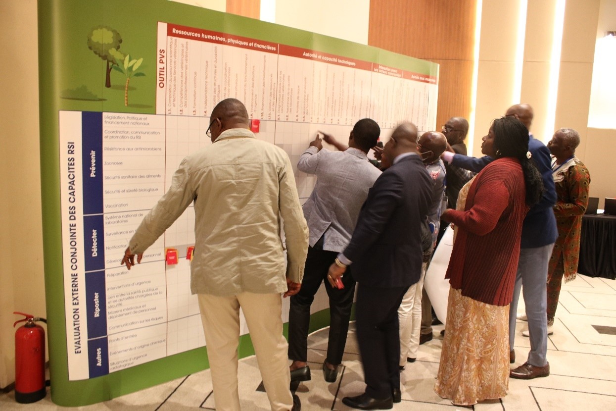 More than 150 public health, animal health, and environmental sector agents and managers met in Libreville, Gabon and Kintele, Republic of Congo in June 2022 to build capacity for intersectoral collaboration through two national IHR-PVS workshops organised under the EBO-SURSY project. Eight of the 10 countries targeted by the EBO-SURSY project were able to benefit from these workshops.