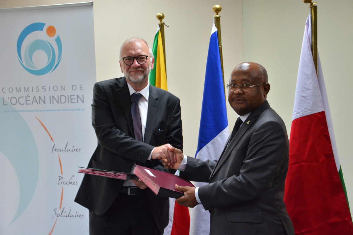 The Secretary General of the Indian Ocean Commission, H.E. Madi Hamada and the Director General of the OIE, Dr. Monique Eloit, have signed the Cooperation Agreement, granting reciprocal observer status to both Organisations.