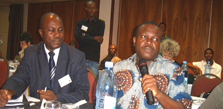 Dr Sylvain P. Enkoro from Gabon responding to questions. Seated next to him, Dr Prosper Kabambi Ngabu from DRC. Picture (c) Neo J. Mapitse (oie) 2011.