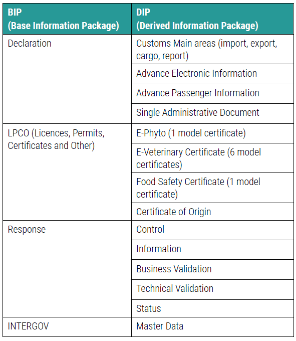 By deriving a pertinent Information Package, either a Base Information Package (BIP) or a specific Derived Information Package (DIP), and translating it into a My Information Package (MIP), countries can then start implementing the WCO DM. One of these BIPs is called the LPCO BIP that describes the use of the WCO DM for electronic Licences, Permits, Certificates and Other forms. It includes the DIP for the OIE Veterinary Certificate for International Trade. The OIE DIP describes the subset of the WCO DM structure of certificates containing essential information relating to animal health and public health.