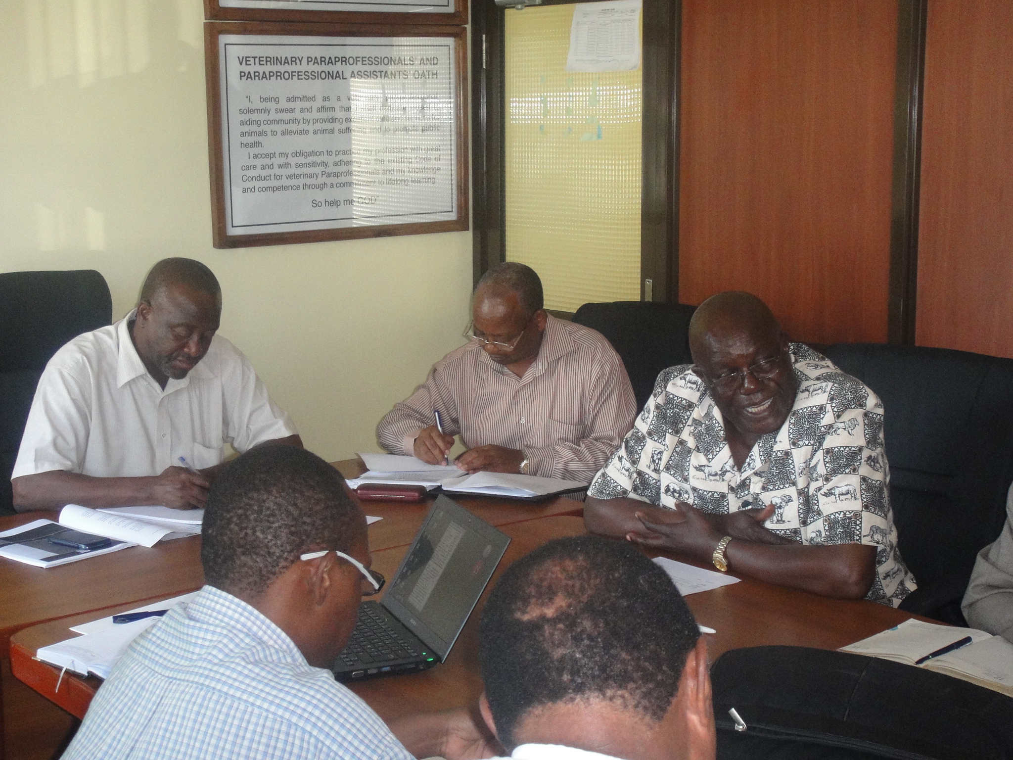 From left to right : Dr Peter Njau, acting Director of Veterinary Services, Dr Walter Masiga, OIE Representative, Hon. Benedikt Ole Nangoro, Deputy-Minister and Dr. Abdu Hayghaimo, acting Director of Veterinary Services. Picture © P. Bastiaensen (oie) 2013.
