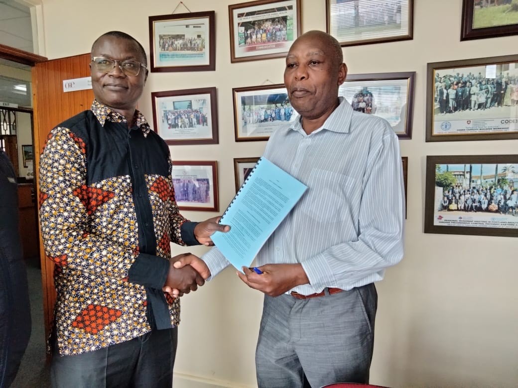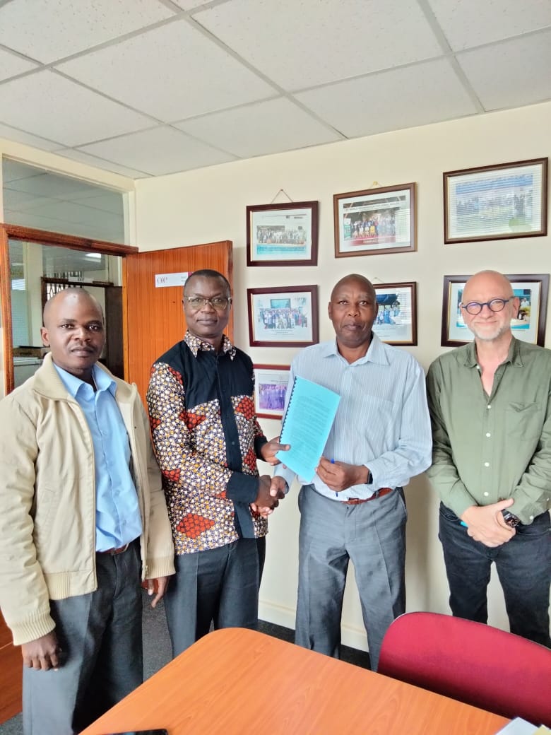 Picture: Dr. Simon Kihu and Dr. Patrick Bastiaensen (WOAH) during the signing ceremony with AVTA President Mr. Benson Ameda and his team in Sub regional representation of Eastern Africa offices in Nairobi.