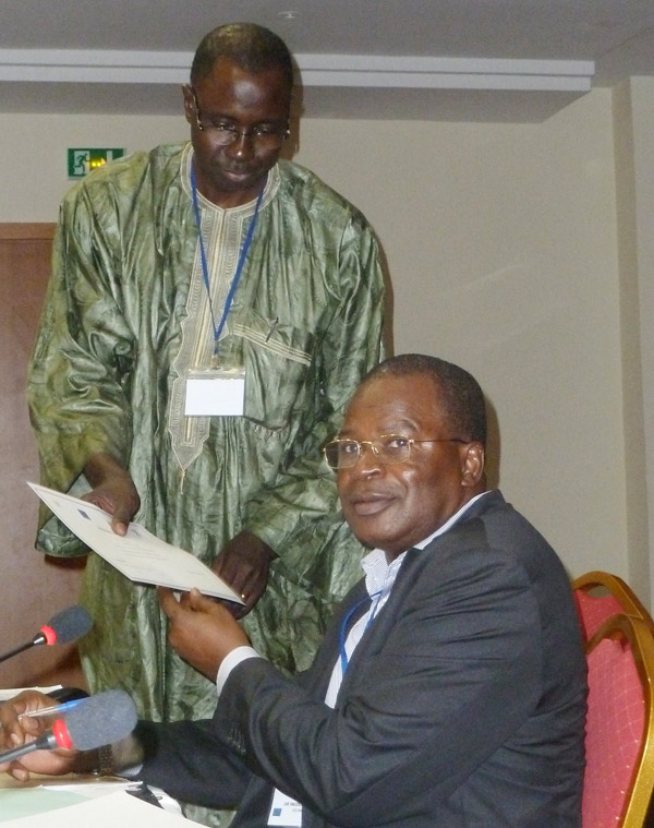 Delivery of certificates of attendance by Dr. Y. Samaké OIE and Dr S. Diallo WAEMU. Picture © V. Brioudes (oie) 2013.