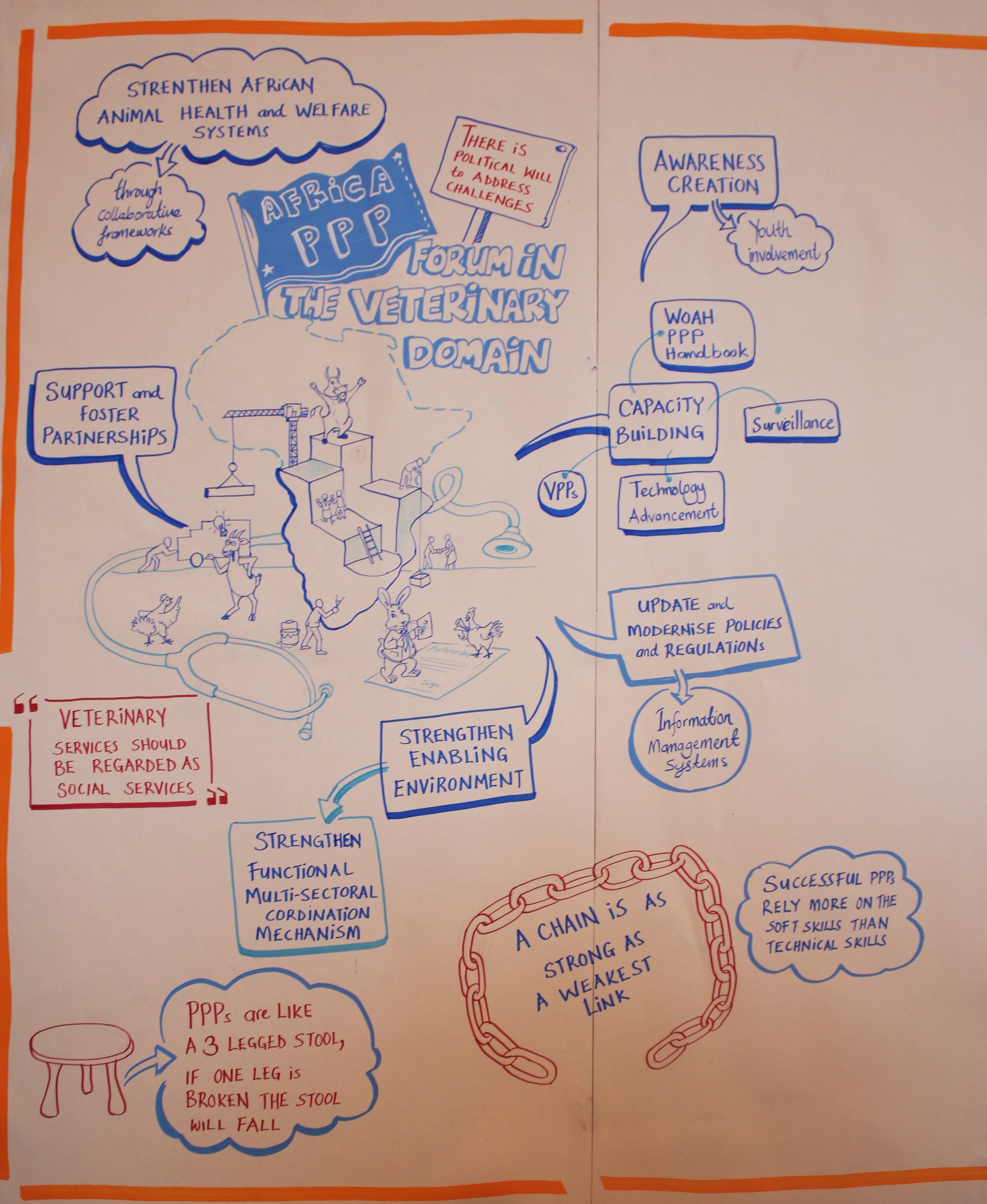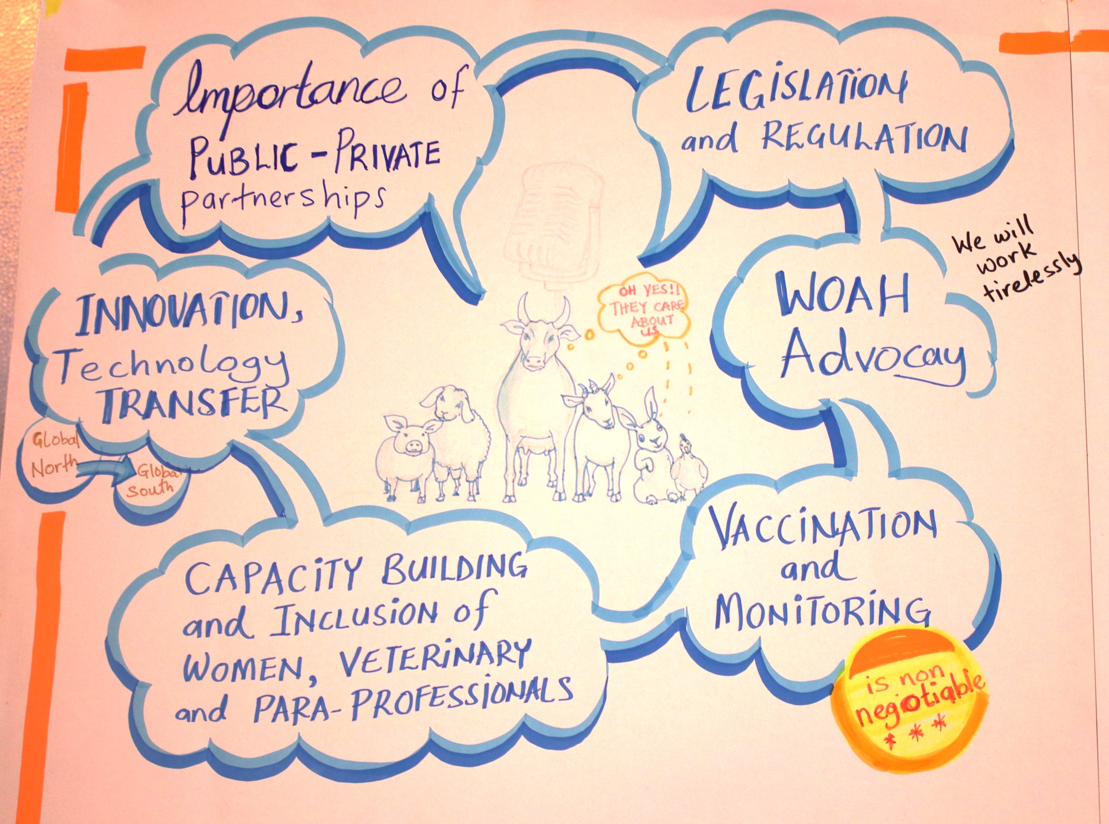 The participatory round tables presented parallel regional discussions by geographic areas (West- Central, Eastern, Southern and North Africa) as well as for different categories and cadres of veterinary paraprofessionals with topics such as Surveillance and field activities, Challenges and opportunities in the use of antimicrobials in the field; Animal welfare, as well as Meat inspection and laboratory services.