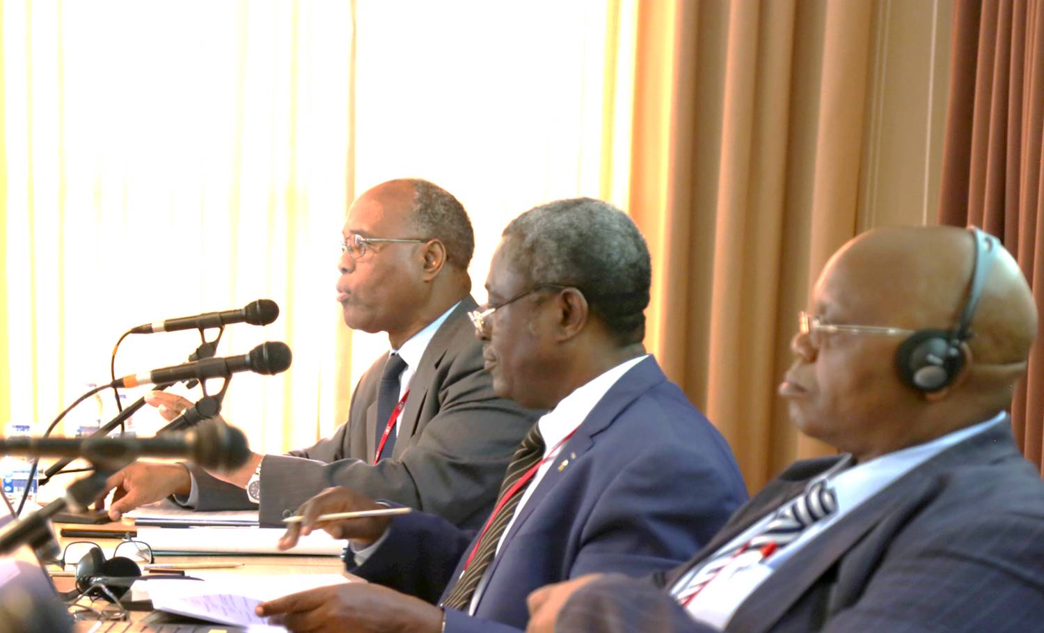 Bureau of the meeting of the OIE Regional Commission for Africa. Fltr : Dr Karim Tounkara, Regional Representative, Dr Honoré N’Lemba, President of the Regional Commission and Dr Botlhe Michael Modisane, Immediate Past President of the OIE Council.