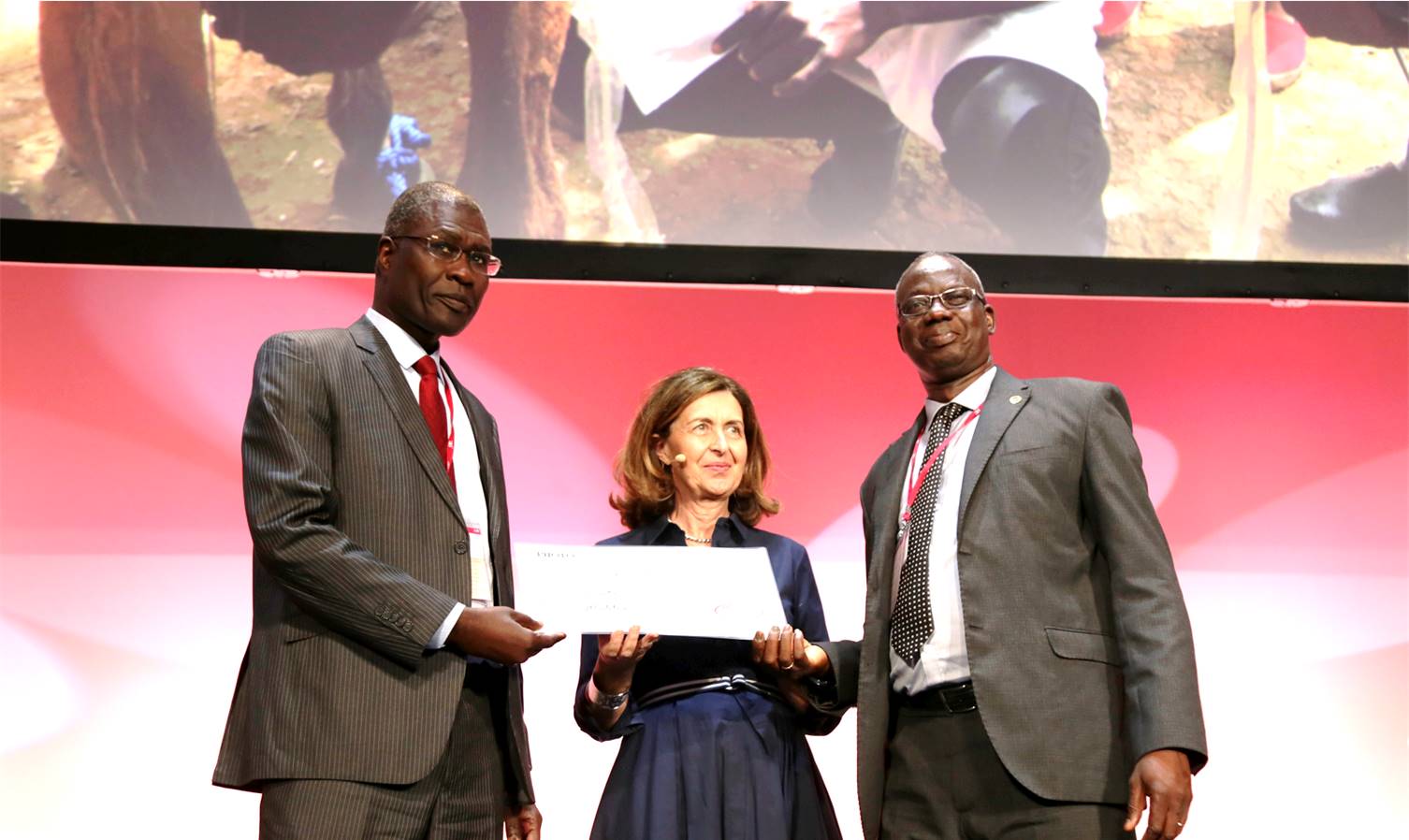 The OIE Delegates of Senegal (left) and Burkina Faso (right) receive the prize money on behalf of the winner of the regional OIE photo competition, Mr. Boris Ouattara of the Inter-State School of Veterinary Sciences and Medicine (EISMV) in Dakar, Senegal.