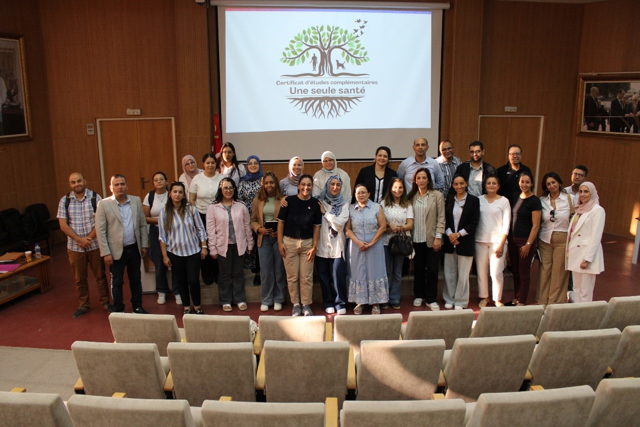 This innovative pilot course on One Health has been launched through a unique collaboration between the School of Veterinary Medicine of Sidi Thabet and the Faculty of Medicine of Tunis. It is designed to foster interdisciplinary learning and cooperation, bringing together a diverse team of 39 experts from fields such as economics, psychology, plant health, climate change, vector biology, biodiversity, and more.