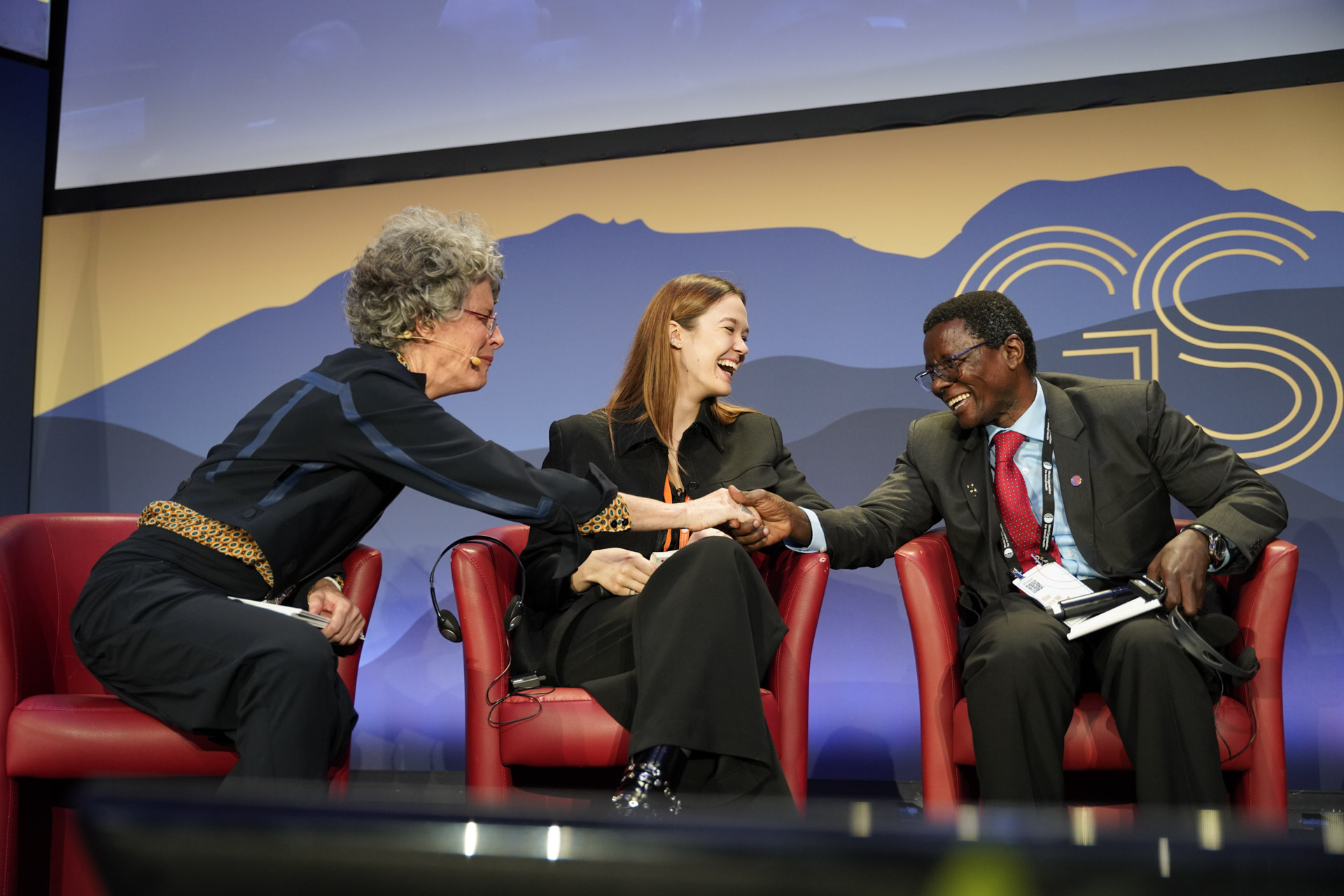 Panel discussion on the future of WOAH. Fltr : Drs Gillian Mylrea (Head of Department, WOAH Standards Department), Marta Masserdotti (Chair of the Standing Committee on One Health of the IVSA) and Roland Xolani Dlamini (Delegate of Eswatini and WOAH Council Member). Picture (c) M. Tric (woah) 2024