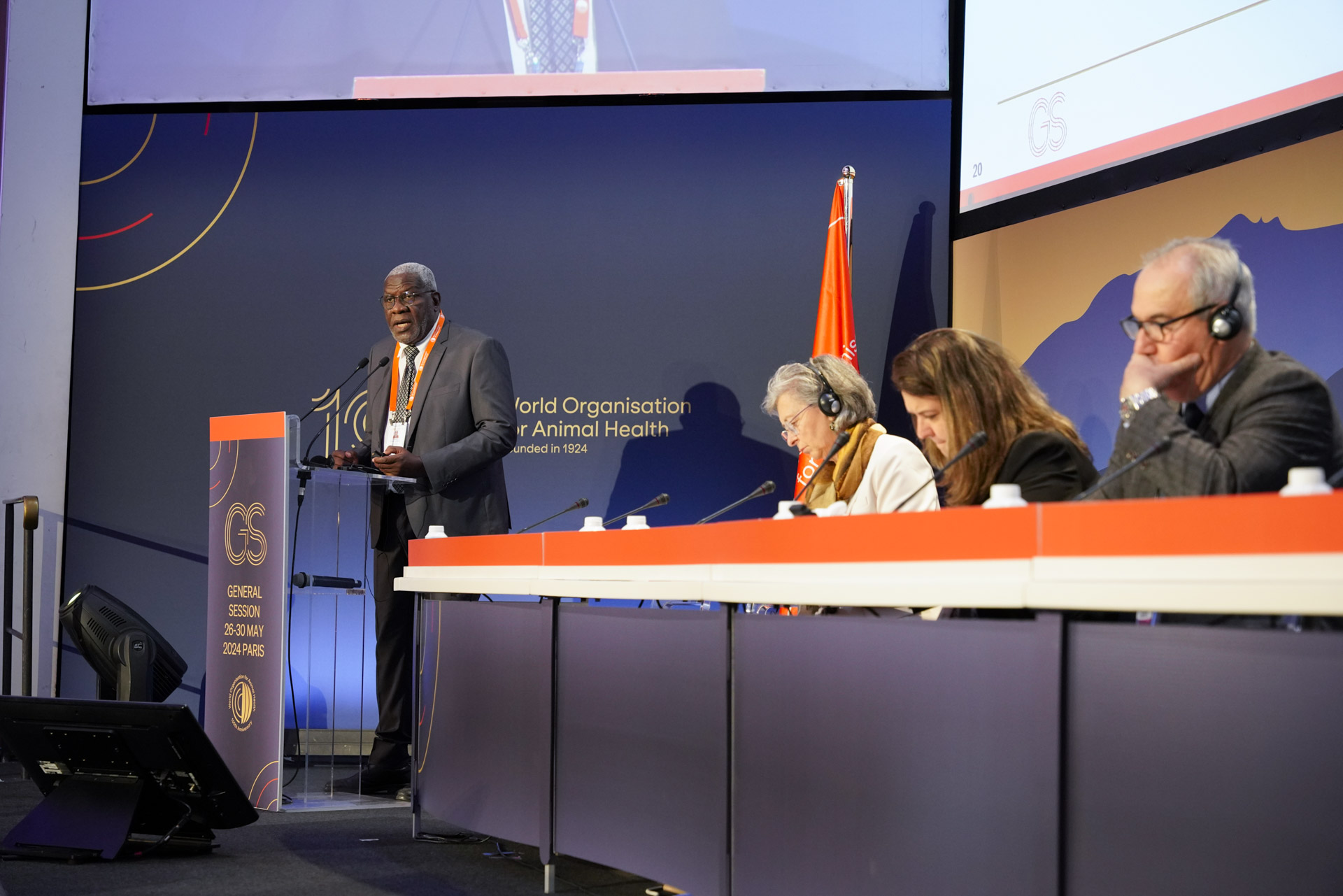 Dr Emmanuel Couacy-Hymann (Côte d’Ivoire), President of the Biological Standards Commission (BSC), presenting the annual activity report. Picture (c) M. Tric (woah) 2024
