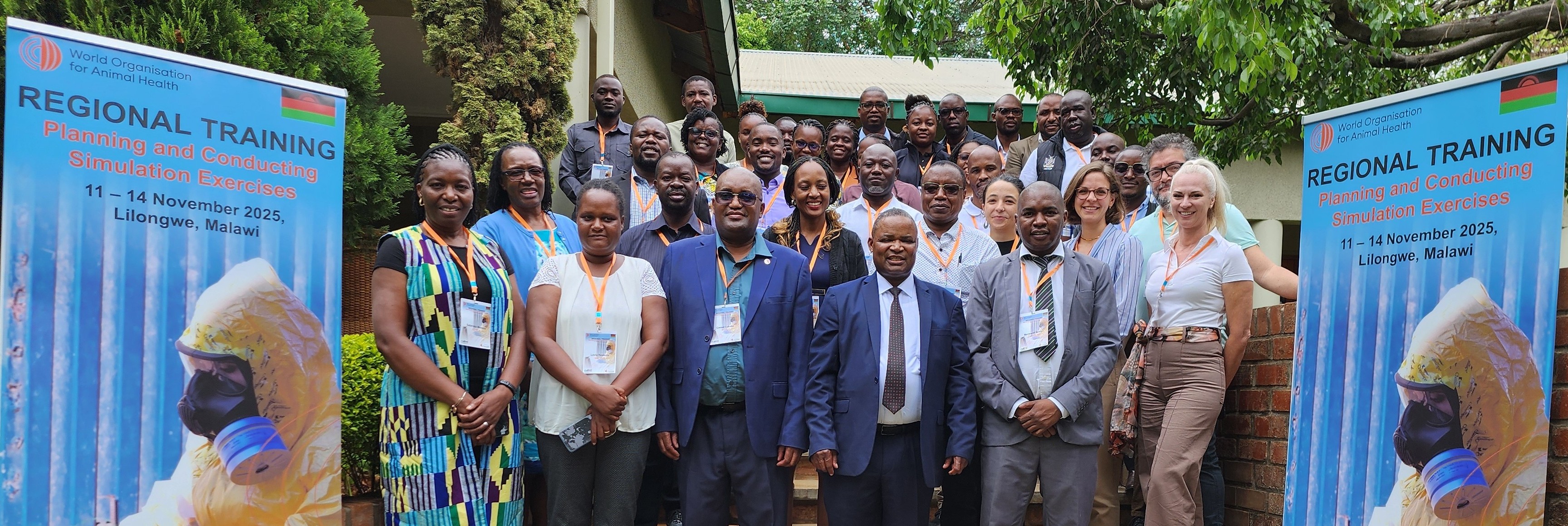Dans ce contexte, du 11 au 14 novembre, l’OMSA a organisé à Lilongwe, au Malawi, une formation régionale axée sur la planification et la réalisation d’exercices de simulation pour les pays anglophones bénéficiaires du projet Renforcement de la résilience institutionnelle face aux menaces biologiques (FIRABioT). Avec le soutien technique de la Commission européenne pour la lutte contre la fièvre aphteuse (EuFMD), la formation a permis aux participants du Kenya, du Malawi, de Namibie, de Tanzanie et du Zimbabwe d’acquérir les connaissances et compétences nécessaires pour planifier, réaliser et évaluer des exercices de simulation.