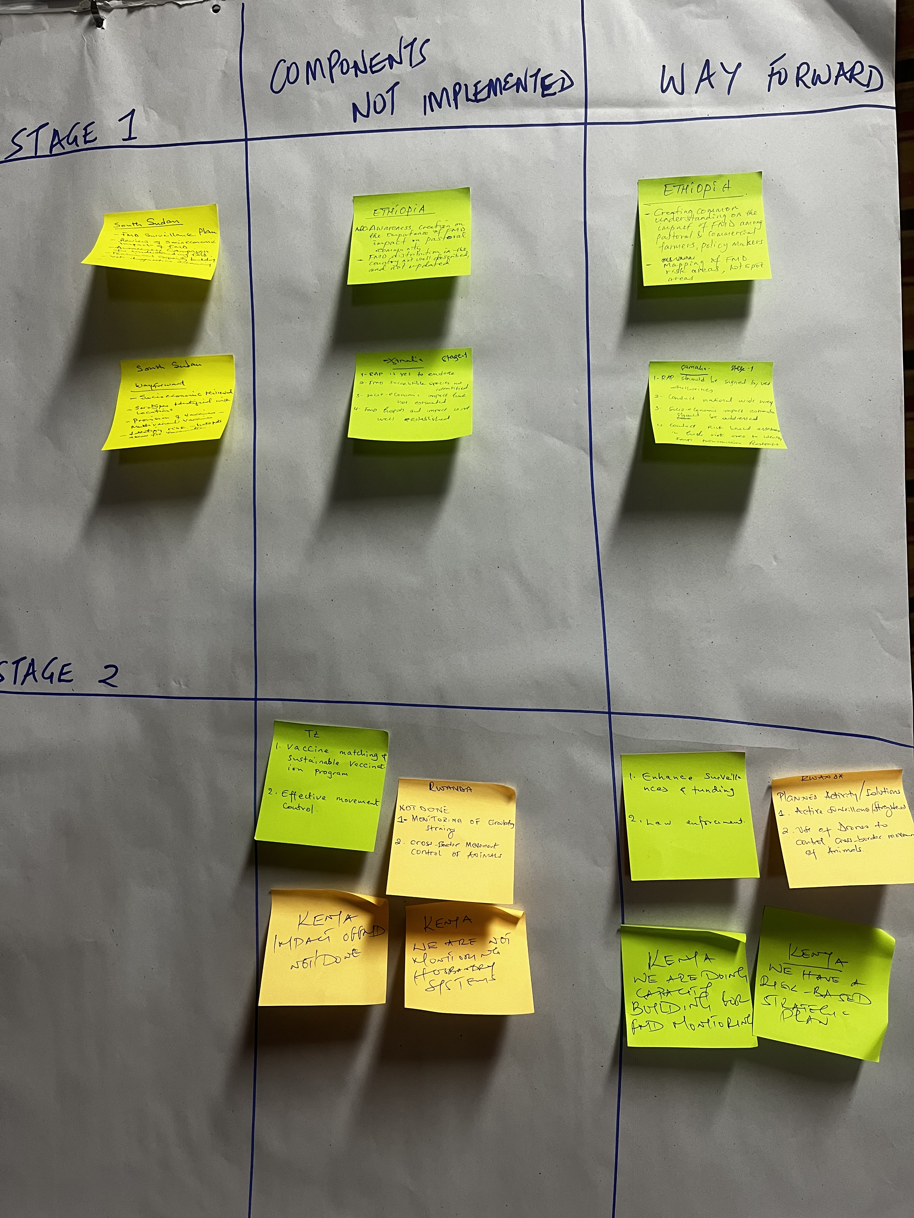 The group work was organized based on the country’s PCP-FMD stages. The discussions focused on identifying key gaps and proposing practical solutions to advance national FMD control strategies. These were categorised as follows: