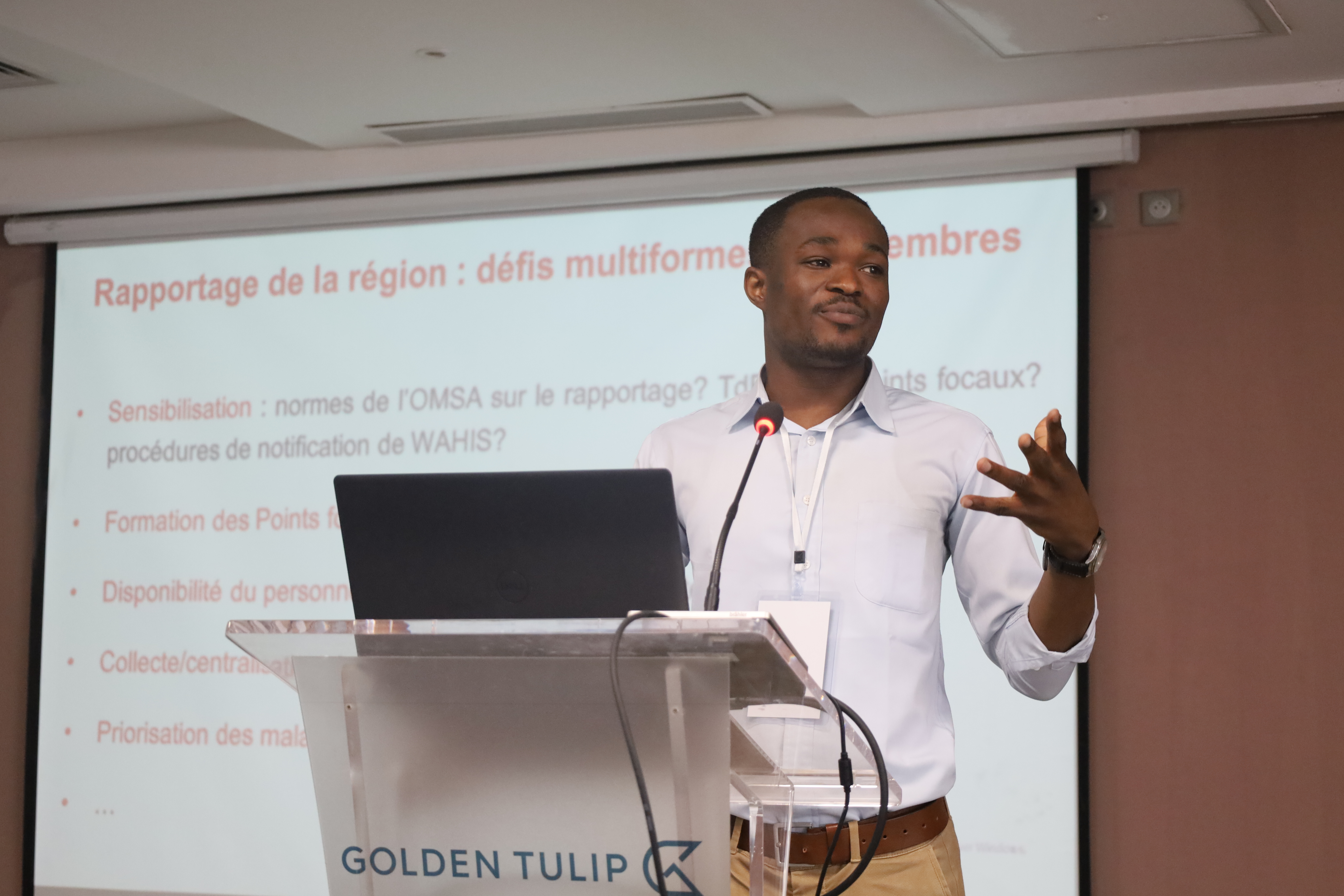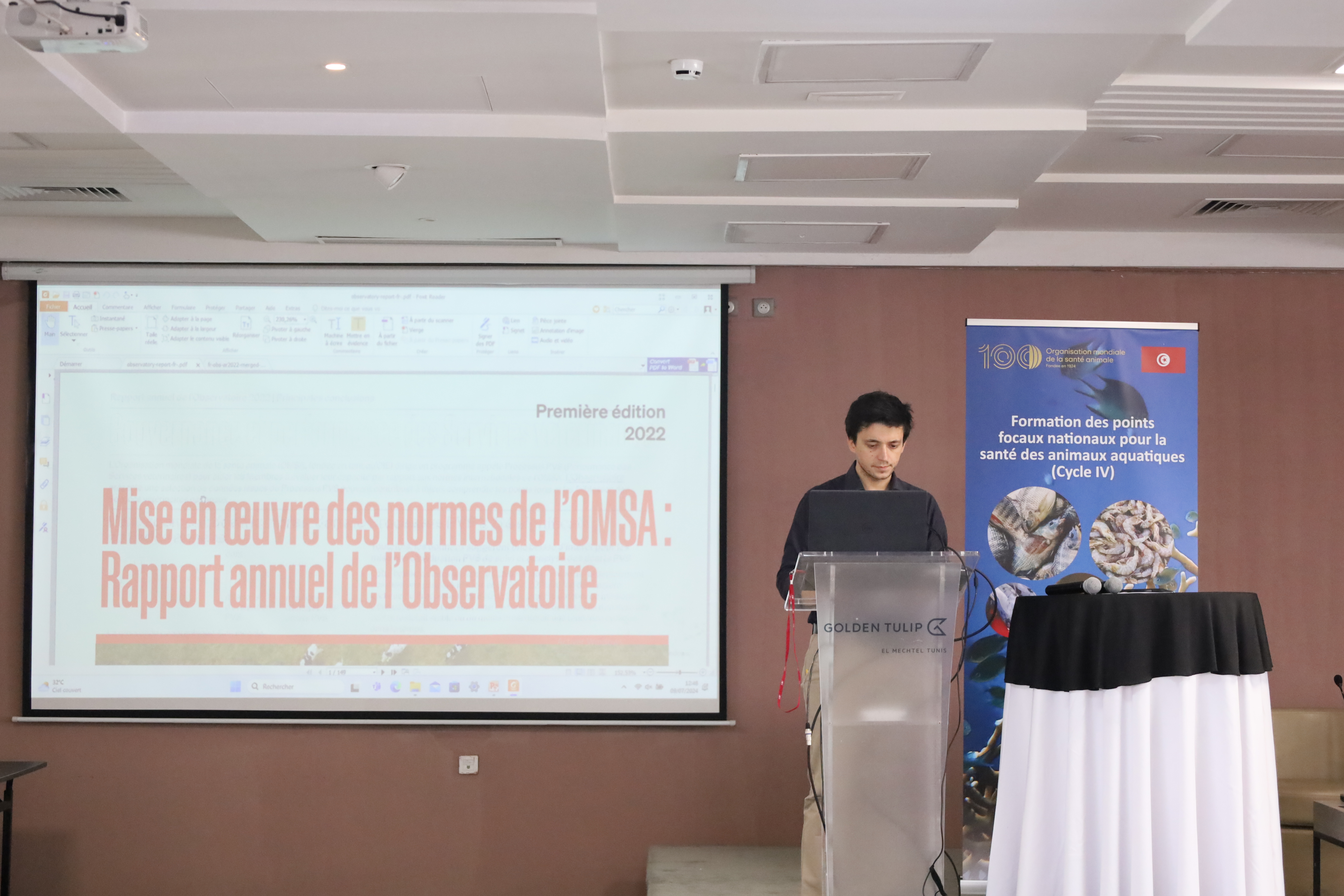 Besides WOAH regional (Tunis) and head office staff (World Animal Health Information and Analysis Department, Standards Department, capacity Building Department Paris), contributions were made by seven international experts (in alphabetical order) : Shimaa Elsayed Mohamed Ali (Norway), Mickael Teixeira Alves (UK), Charles Caraguel (Australia), Nadia Cherif (Tunisia), Kevin Christison (South Africa), Larry Hammell (Canada), Marc le Groumellec (Madagascar/France), Andrea Marsella (Italy), Anna Toffan (Italy), along with one African Union (AU-IBAR) regional expert : Mrs. Nelly Isyagi (Uganda, pre-recorded presentation) and UEMOA expert: Mr. Sidy Ndiaye. Both FAO and WorldFish were represented: FAO, Ms. Melba Reantaso (pre-recorded presentation); WorldFish Mr. Jérôme Delamare-Deboutteville (Malaysia office). Also represented were the SARNISSA network through its moderator Mr William Leschen, and the Rural Fisheries Programme of the Department of Ichtyology and Fisheries Science at Rhodes University, South Africa, through Mr. Qurban Rouhani.