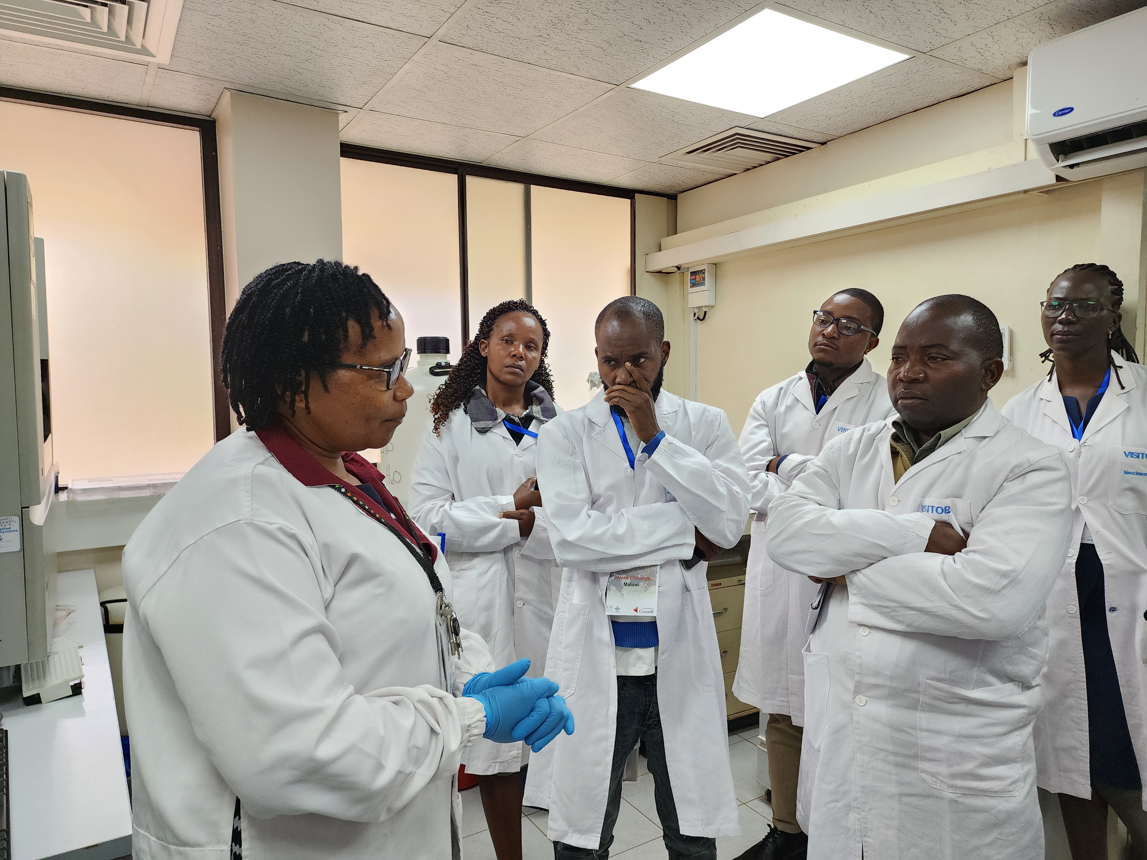 Participants during a lab tour of ILRI’s sequencing facilities. Picture © I. Busuulwa (woah) 2024