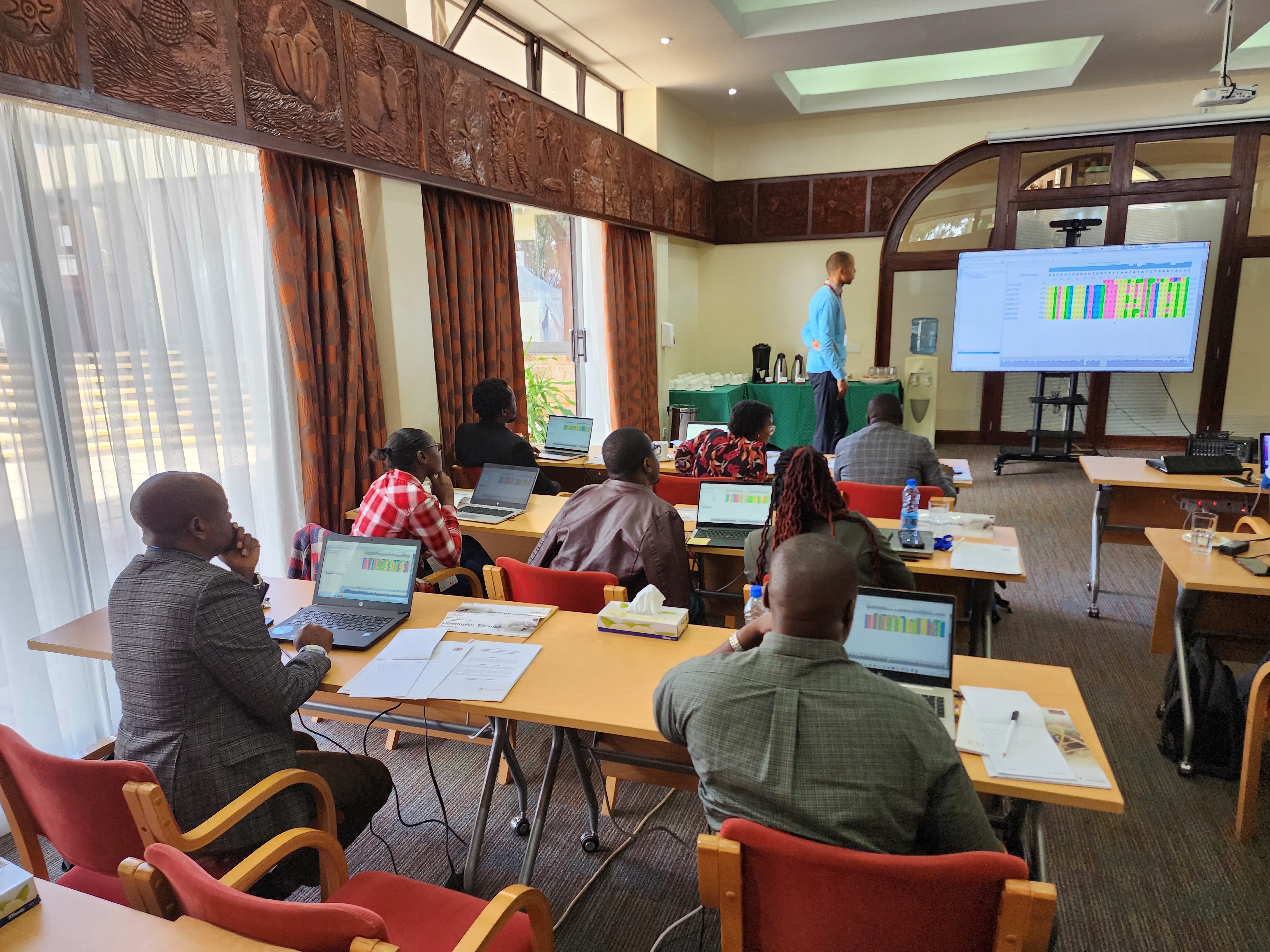 Dr Jean Baka Domelevo – Head of Data and Research Methods at ILRI leading a demonstration for the participants. Picture © I. Busuulwa (woah) 2024
