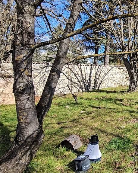 BG Pro (Biogents AG) hanging configuration (CDC style). Picture (c) Silvio G. D’Alessio (IZS) 2025.