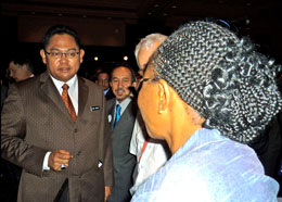 Le Ministre de l’agriculture et des industries agroalimentaires salue le Dr Florência Cipriano, Adjointe au Représentant Régional de l’OIE pour l’Afrique.