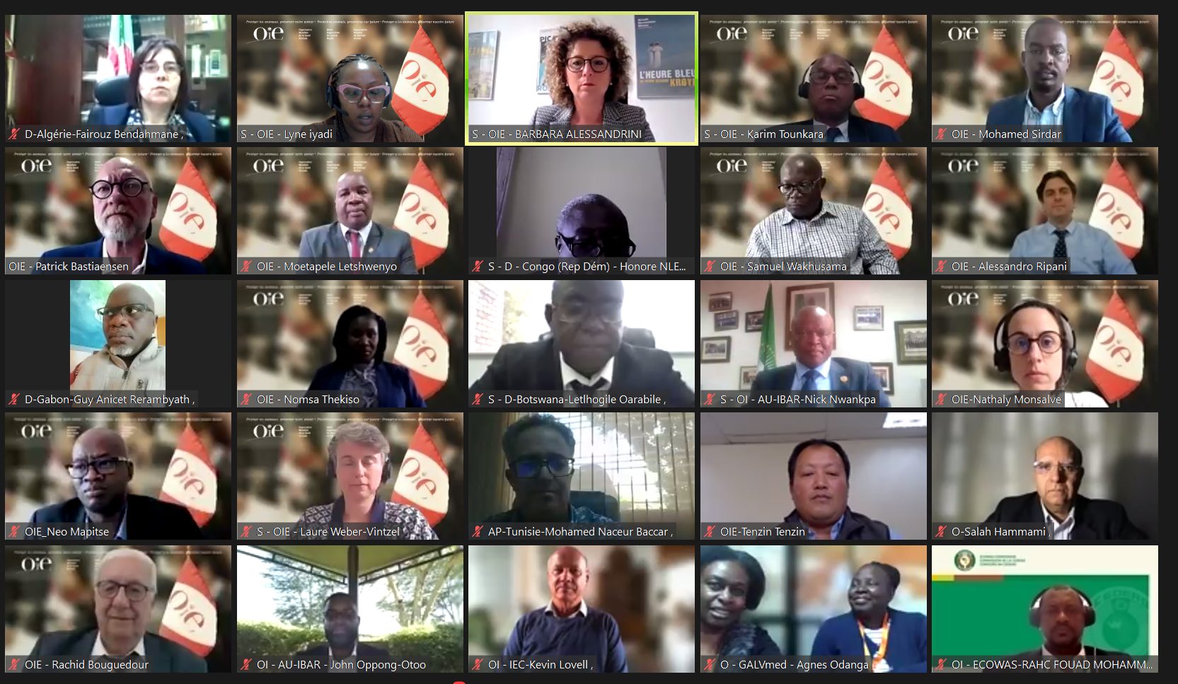 La Commission Régionale de l’OIE pour l’Afrique s’est réunie par vidéoconférence le 16 mai 2022 et la réunion a rassemblé jusqu’à 114 participants, dont des Délégués et observateurs de 31 Membres de la Commission, et des représentants de 13 organisations internationales ou régionales.