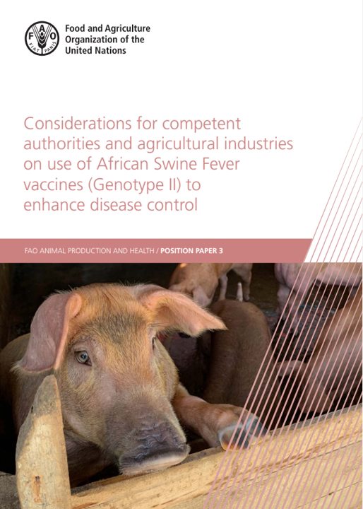 Couverture : Livre-blanc de la FAO sur “Considerations for competent authorities and agricultural industries on use of African swine fever vaccines (Genotype II) to enhance disease control”.