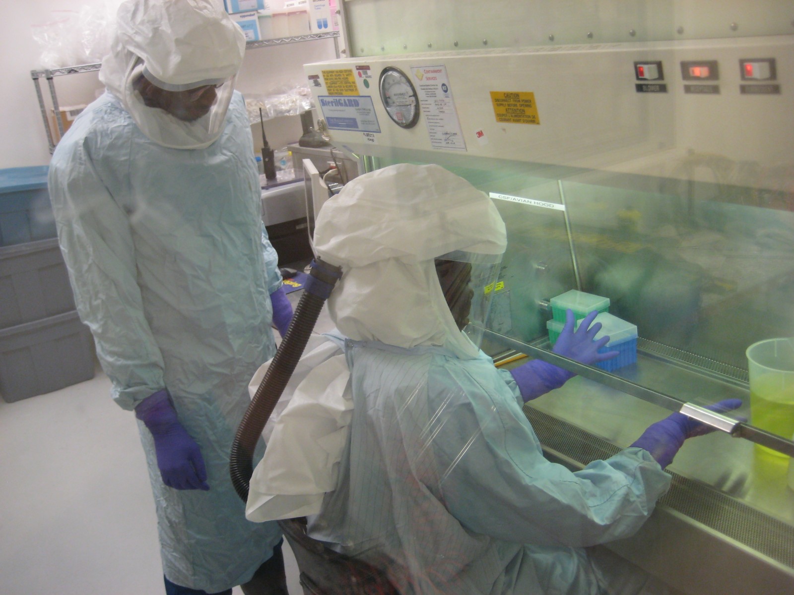 Au Ghana, le Laboratoire Vétérinaire d’Accra (Accra Veterinary Laboratory, AVL) a récemment renforcé ses capacités et son expertise, grâce à un projet de jumelage de l’OIE lancé en 2018. Ce projet visait à renforcer l’expertise des laboratoires en matière de maladies aviaires. Dans ce cadre, le personnel du laboratoire a été formé à différentes techniques de diagnostic au Centre national pour les maladies animales exotiques (National Centre for Foreign Animal Disease) au Canada, un Laboratoire de Référence de l’OIE sur la grippe aviaire. in Canada, an OIE Reference Laboratory on avian influenza. Par ailleurs, avec le soutien financier de Global Affairs Canada (GAC), des équipements de protection individuelle, tels que des respirateurs à purification d’air, ont été fournis avec d’autres équipements de diagnostic, ce qui a permis d’améliorer les installations du laboratoire. Ces équipements ont renforcé la sécurité du personnel du laboratoire et lui ont permis de mettre en œuvre des procédures de biosécurité et de sûreté biologique (bio-sûreté) lorsqu’ils travaillent avec des agents pathogènes dangereux.