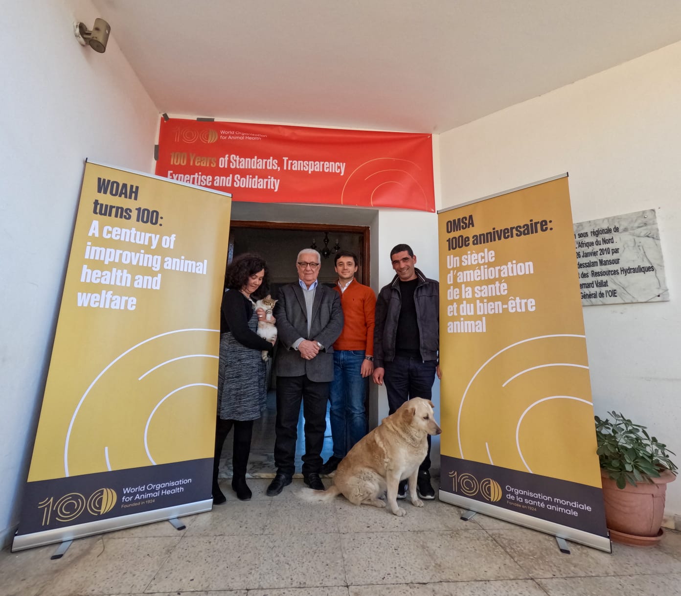 Dans le nord de l’Afrique, en Tunisie, le Dr Rachid Bouguedour a dirigé son équipe, y compris les collègues à quatre pattes, lors d’un déjeuner d’équipe pour commémorer l’anniversaire. Ils ont également échangé des souvenirs pour commémorer les étapes franchies.