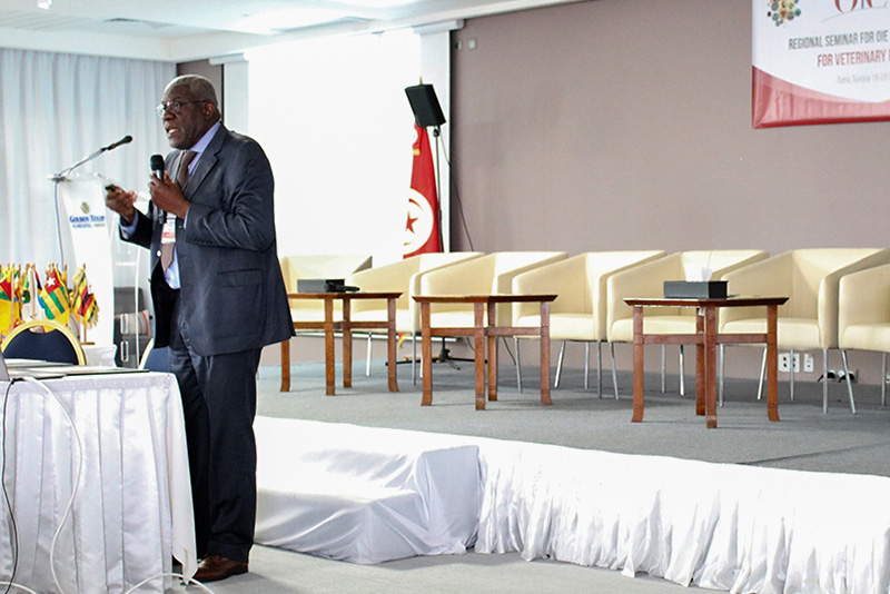 Initié par le Service des programmes de l’OIE et la Représentation sous-régionale de l’OIE pour l’Afrique du Nord, et soutenu par les projets EBO-SURSY et REDISSE, le Séminaire régional des Points focaux nationaux de l’OIE pour les Laboratoires vétérinaires s’est tenu à Tunis (Tunisie) du 18 au 20 septembre 2018. L’OIE a nommé 161 Points focaux « Laboratoires » répartis dans le monde entier, dont 31 % sont des femmes, 66 % occupent des postes de direction au sein de laboratoires, et 75 % sont titulaires d’un doctorat ou assimilé. Le séminaire de Tunis a rassemblé 36 Points focaux « Laboratoires » africains de l’OIE, dont 8 (Cameroun, Côte d’Ivoire, République démocratique du Congo, Gabon, Guinée, Liberia, République du Congo et Sénégal) sont issus des 10 pays du projet EBO-SURSY.1,2