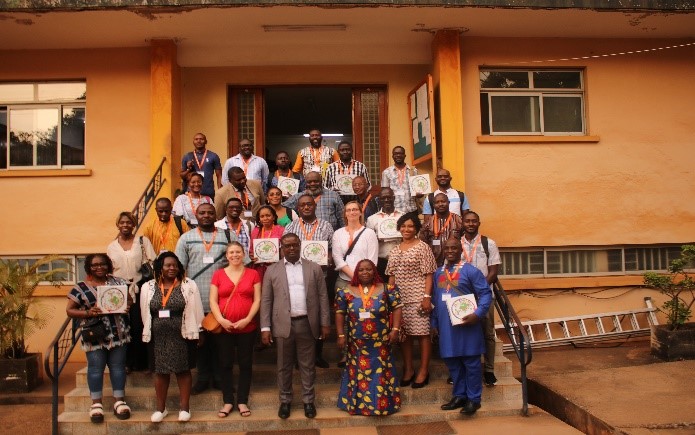 Au total, 23 (5F/18H) animateurs provenant des facultés de médecine vétérinaires de l’université des montagnes, de Buea et de Ngaroundéré, de l’école de faune de Garoua, du Centre de santé Gosen, de la Faculté de Médecine et des Sciences Biomédicales, du Centre de recherche pour les maladies Émergentes et Ré-émergentes (CREMER), des services vétérinaires et faune sauvage, du projet SWM, du WWF, du programme zoonoses du Cameroun ont été formés à la facilitation du jeu.