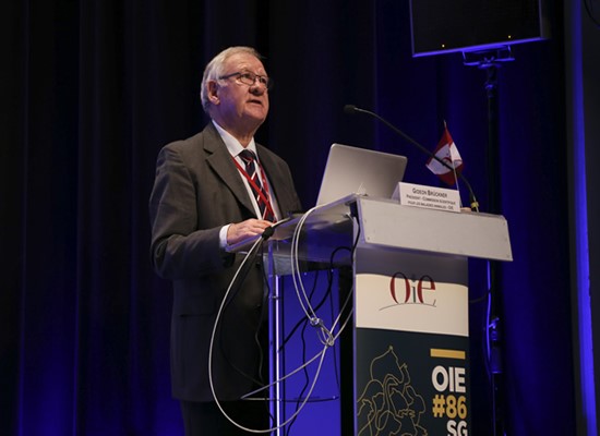 Le Dr Botlhe Michael Modisane, Président de l’OIE, a décerné les prix honorifiques de l’OIE à certains membres de la communauté vétérinaire pour les services exceptionnels rendus à la science vétérinaire et à l’OIE. Cette année, parmi les membres récompensés figurait le Dr Michael Graeme Garner (Australie), récipiendaire de la médaille d’or.