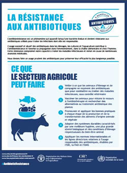 l’antibiorésistance, en régulant et supervisant l’usage des agents antimicrobiens, en dispensant un avis professionnel aux éleveurs et aux propriétaires d’animaux et en collaborant avec le secteur de la santé humaine.