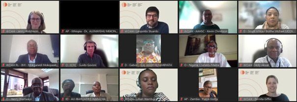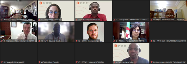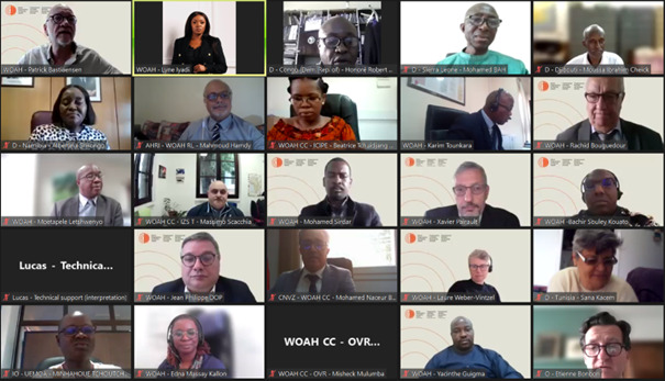 La Commission Régionale pour l’Afrique s’est réunie par vidéoconférence le 15 mai 2023. La réunion a rassemblé jusqu’à 135 participants, dont les Délégués et Observateurs de 35 Membres de la Commission et les représentants de 15 organisations internationales ou régionales. Les observateurs étaient les Présidents et les Membres de la Commission des normes biologiques et de la Commission des normes sanitaires pour les animaux terrestres. La réunion était présidée par le Dr Honoré Robert N’lemba Mabela, Président de la Commission Régionale pour l’Afrique et Délégué de la République Démocratique du Congo, accompagné du Dr Karim Tounkara, Représentant Régional pour l’Afrique.