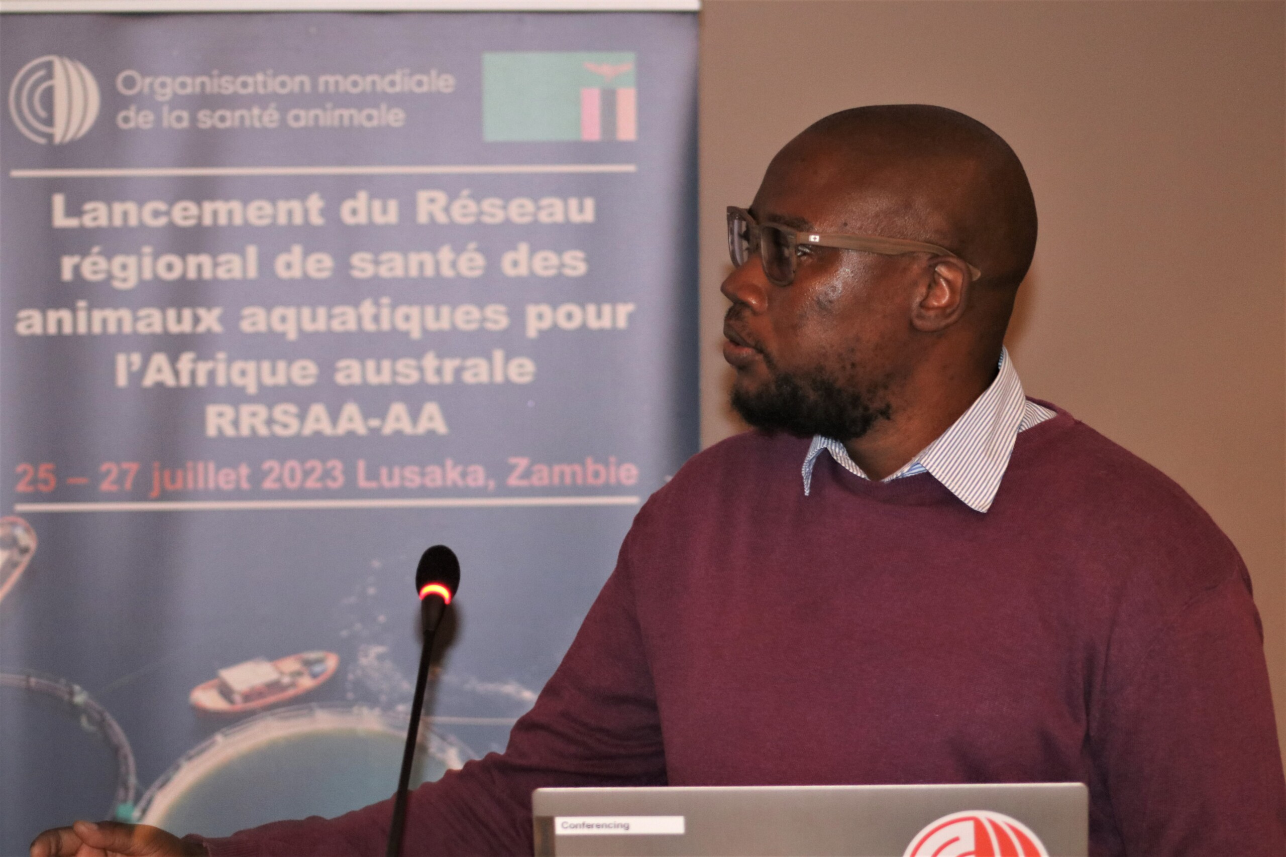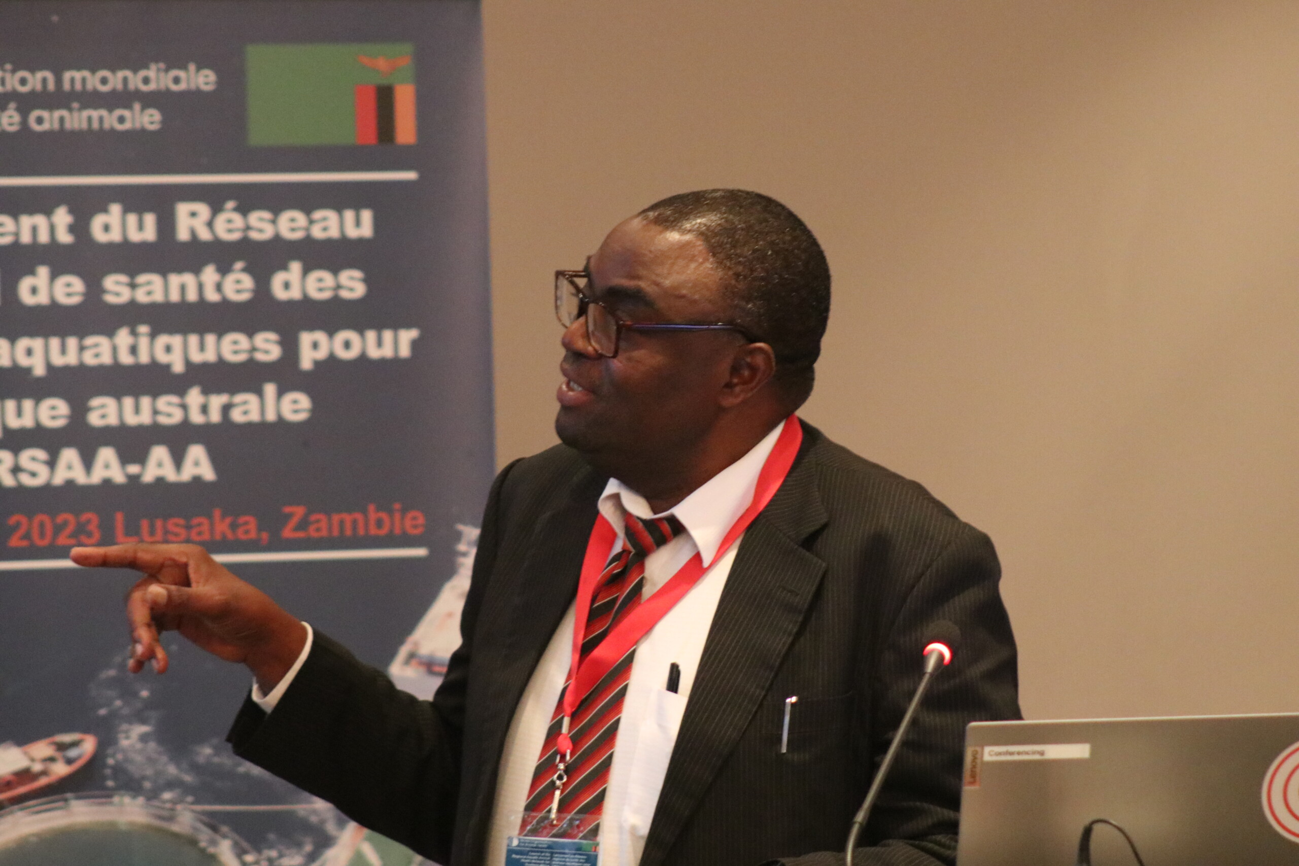 Le secteur privé a apporté sa contribution en présentant deux exposés sur la vision des praticiens de la santé des animaux aquatiques et des aquaculteurs en Zambie.