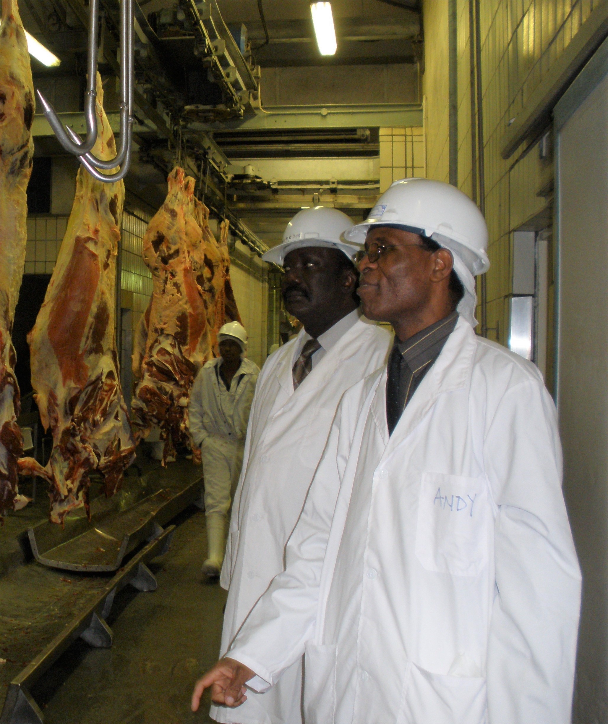 Dr Abdoulaye Bouna Niang lors de la visite à l’abattoir d’exportation du Botswana Meat Commission (BMC) à Lobatse. Photo (c) P. Bastiaensen (oie) 2008.