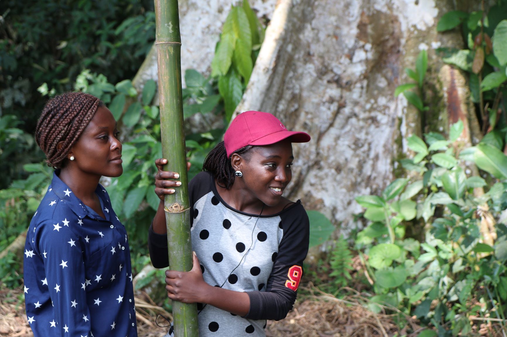Figure 7. Hosanna (à gauche) et Linda (à droite) lors d’une sortie au Gabon visant à récolter des échantillons sur le terrain. IRD © P. Becquart, 2019
