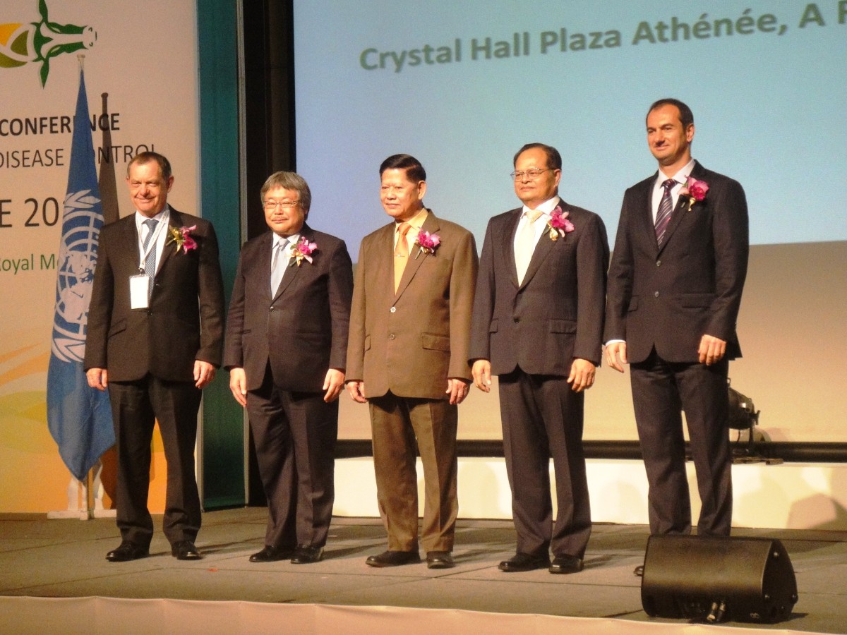 Présidant la séance d’ouverture de la Conférence Mondiale de la FAO et de l’OIE à Bangkok, en présence, notamment, du Ministre de l’Agriculture et des Coopératives de Thaïlande, du DG/OIE et du DGA/FAO, mercredi, le Vice-Premier Ministre a affirmé que « …la Thaïlande œuvre davantage pour la réalisation d’une zone indemne de la fièvre aphteuse d’ici 2015 dans une zone pilote de la région orientale du pays, aussi bien qu’au niveau régional de l’ASEAN d’ici 2020…»