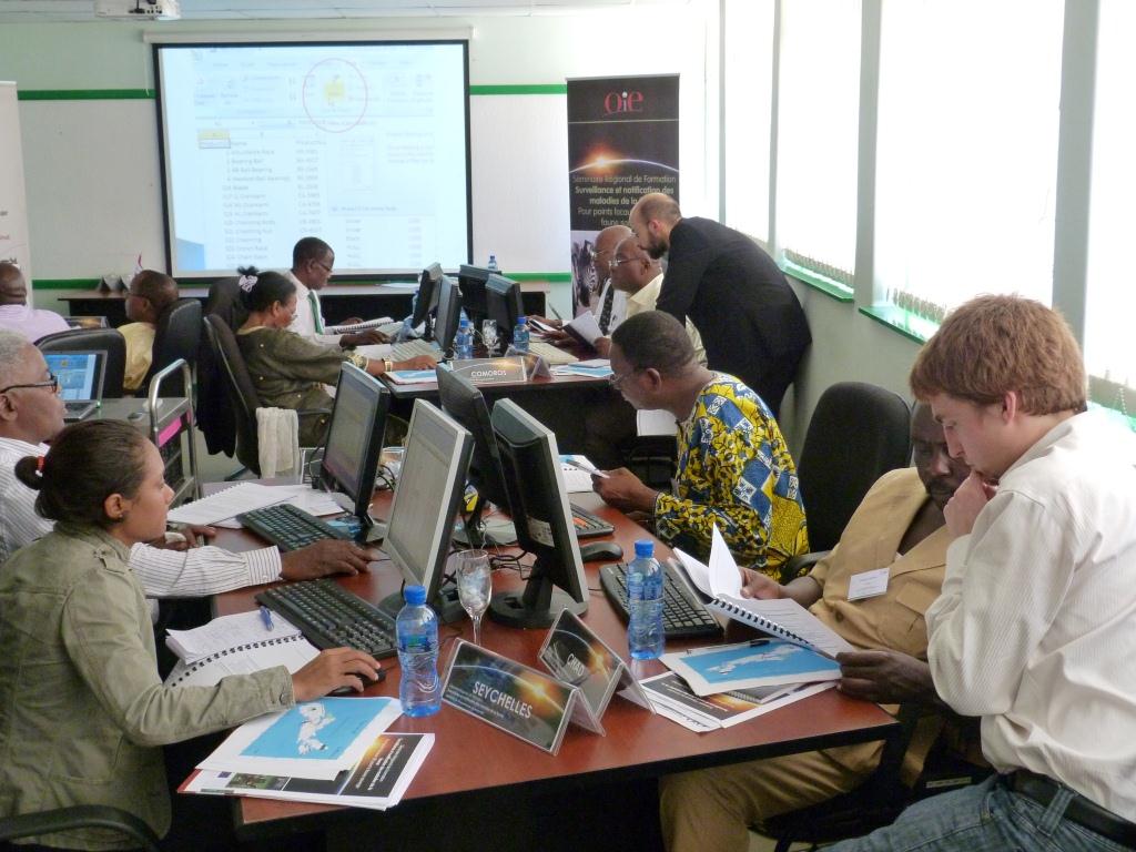 Ce deuxième atelier a été organisé conjointement avec l’OIE et le centre canadien coopératif de la santé de la faune, l’un des trois centres collaborateurs de l’OIE pour les animaux sauvages. Les participants africains d’expression française ont assisté à cet atelier et venaient du Burkina Faso, Bénin, du Burundi, du Cameroun, des Comores, du Congo, de la Guinée Equatoriale, du Maroc, du Niger, du Sénégal, des Seychelles, de Sao Tome et Principe, de la République Démocratique du Congo, de la République centrafricaine, du Tchad et du Togo. La formation visait à améliorer le fait de notifier les maladies de la faune sauvage à l’OIE telle que le stipulent les codes sanitaires pour les animaux terrestre et pour les animaux aquatiques, ceci afin de satisfaire l’un des objectifs de l’Organisation qui vise à obtenir une transparence totale de la situation mondiale des maladies animales, y compris les zoonoses. Dans ce but, l’atelier était organisé comme suit :