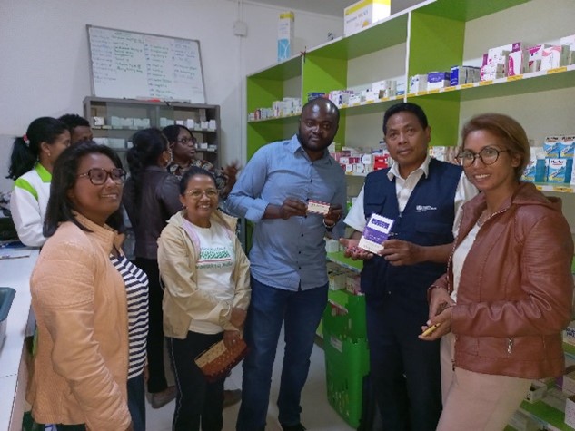 L’équipe de la campagne de sensibilisation à la RAM comprenait des membres du CMC-RAM et des membres Quadripartites nationaux et régionaux. La campagne de sensibilisation s’est déroulée du 21 au 23 mars 2023. L’équipe a rendu des visites de courtoisie à la Directrice régionale de la santé publique, la Dre Herinirina, à la Directrice régionale de l’agriculture et de l’élevage (DRAE), Mme Ligy Arison, et à la Directrice régionale de la pêche et de l’économie bleue, Mme Chantal de Cupertino Koko. Le but de ces visites était de présenter à l’équipe le Projet et ses objectifs. En retour, les directeurs ont accueilli favorablement le projet et se sont engagés à soutenir pleinement le projet AMR-MPTF et la lutte globale contre l’AMR à Madagascar. Après les séances de sensibilisation, les participants ont visité des fermes d’élevage, des pharmacies et des magasins de médicaments vétérinaires. Ces visites ont permis d’apprécier certains des facteurs qui contribuent à la RAM et la manière dont le projet AMR-MPTF peut être modifié et adapté pour répondre à certains de ces problèmes.