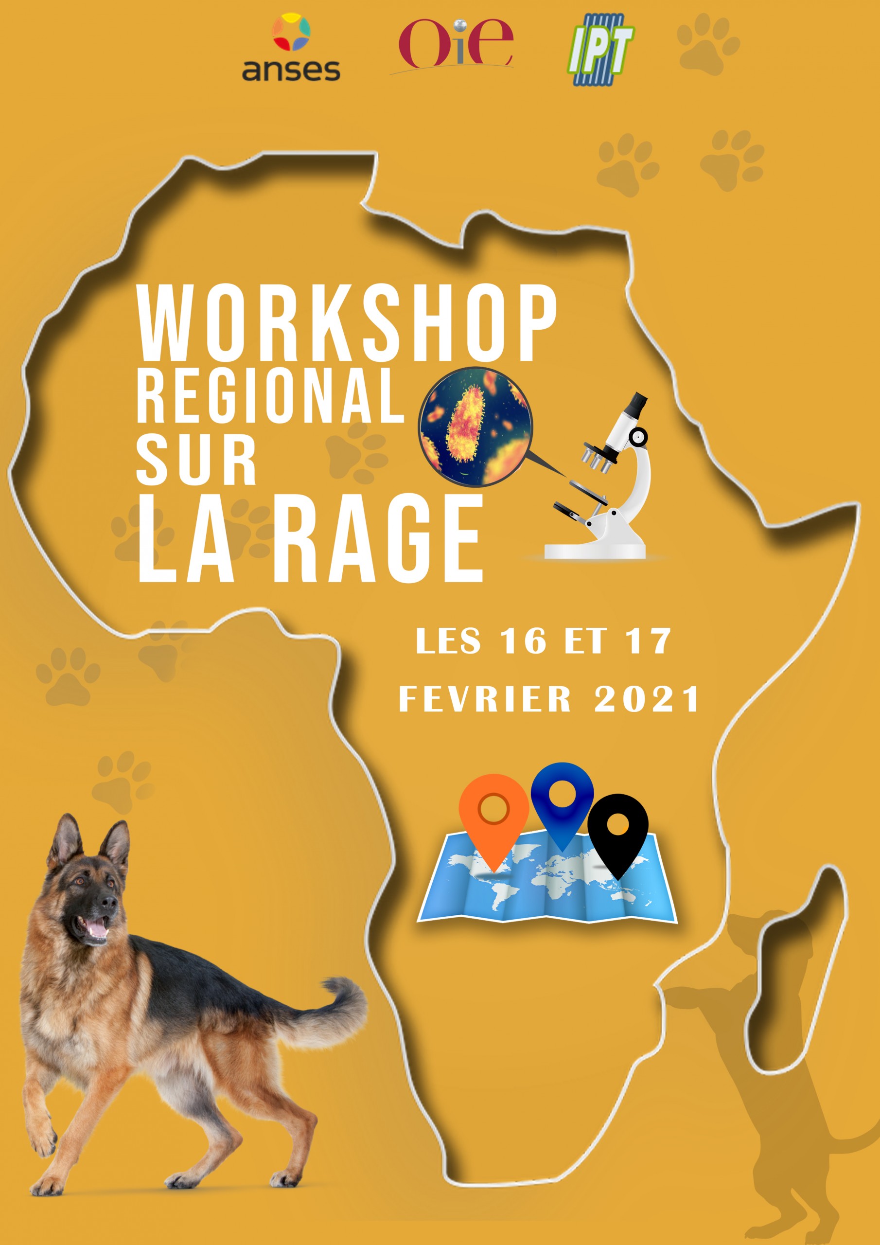 Dans le cadre du projet de jumelage OIE entre le laboratoire de la rage et de la faune sauvage de l’ANSES-Nancy (France) et le laboratoire de la Rage de l’Institut Pasteur de Tunis, trois ateliers étaient prévus pour le lancement du projet et pour une discussion de l’état de la vaccination canine et de la surveillance de la rage dans les pays africains (essentiellement Maghreb et Afrique sub-saharienne) (Activités 3.1, 7.1 et 7.2 du projet). Avec le contexte de la pandémie Covid19, il a été décidé de réaliser une réunion en ligne relatant ces divers aspects. La réunion a réuni 55 participants de plus de 15 pays sur une durée d’un jour et demi, les 16 et 17 février 2021 et s’est tenue en français et en anglais.